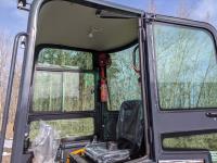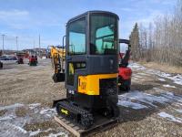 Enclosed cab, 13.5HP gas engine, 16 inch dig bucket, manual thumb, backfill blade, rubber tracks