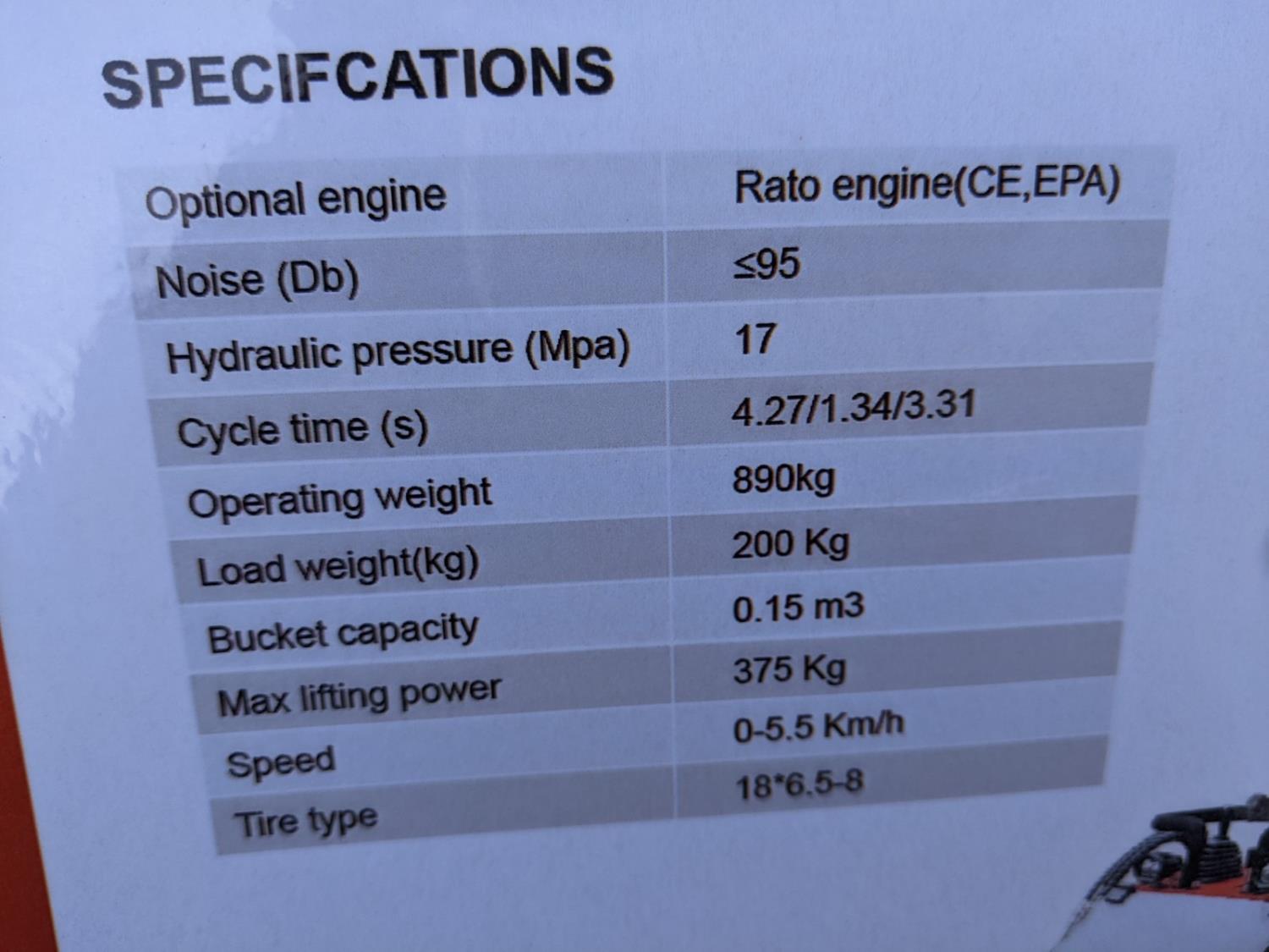 Open station, gas engine, electric start, 40 inch smooth bucket, 18X8.50-8 tires