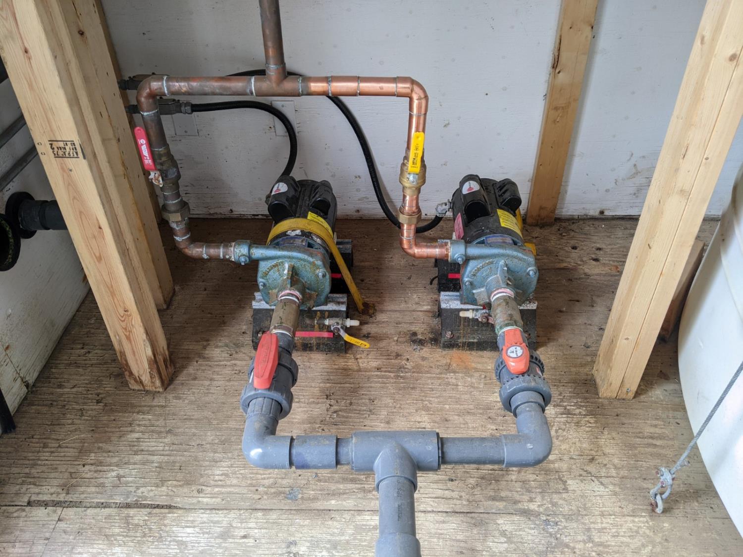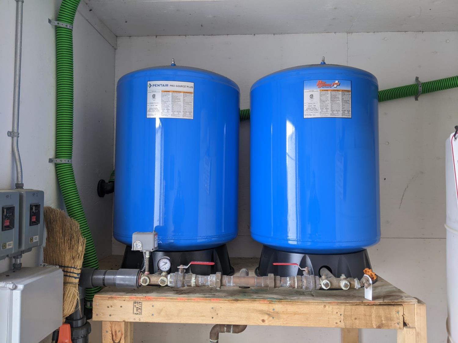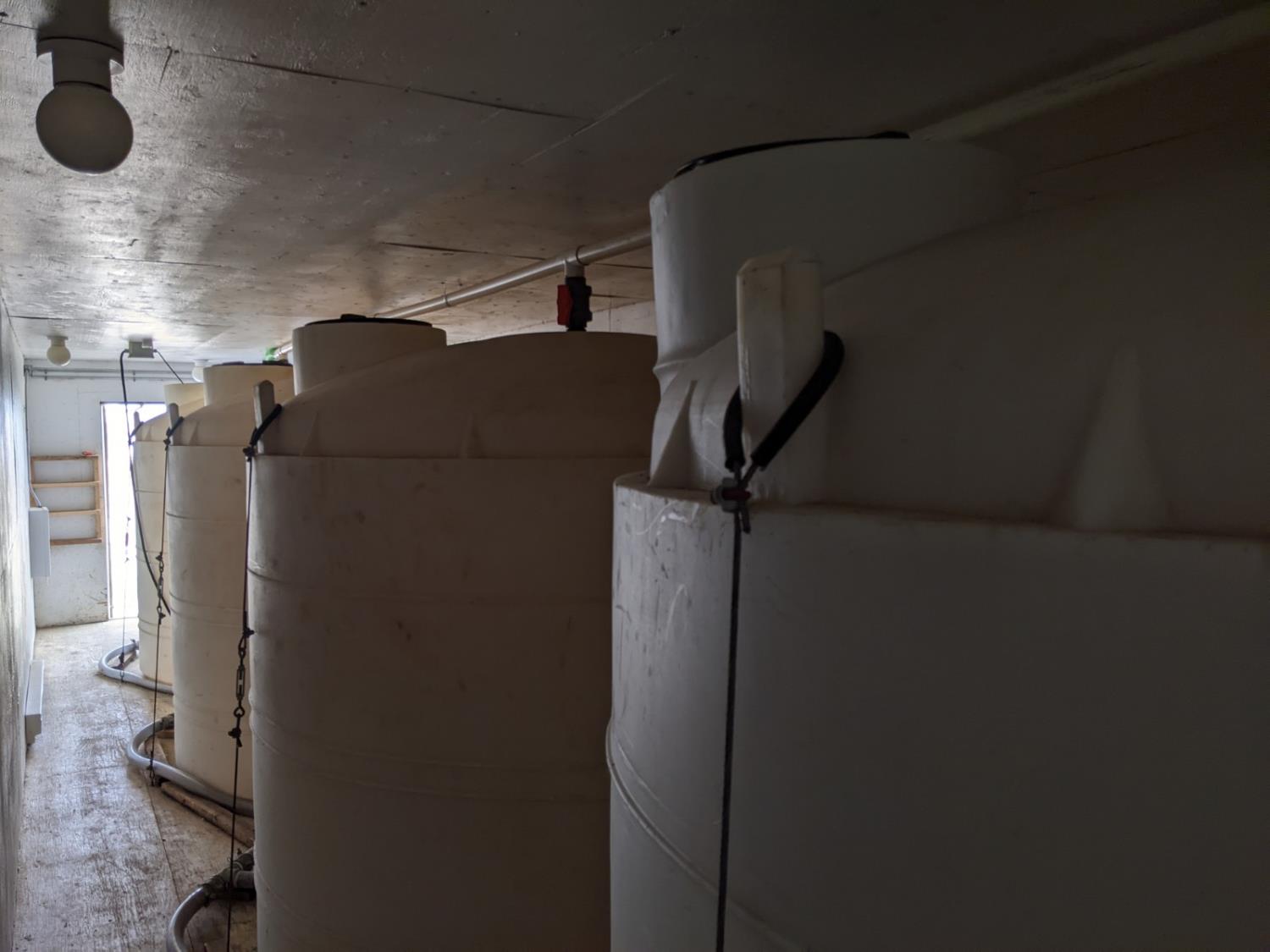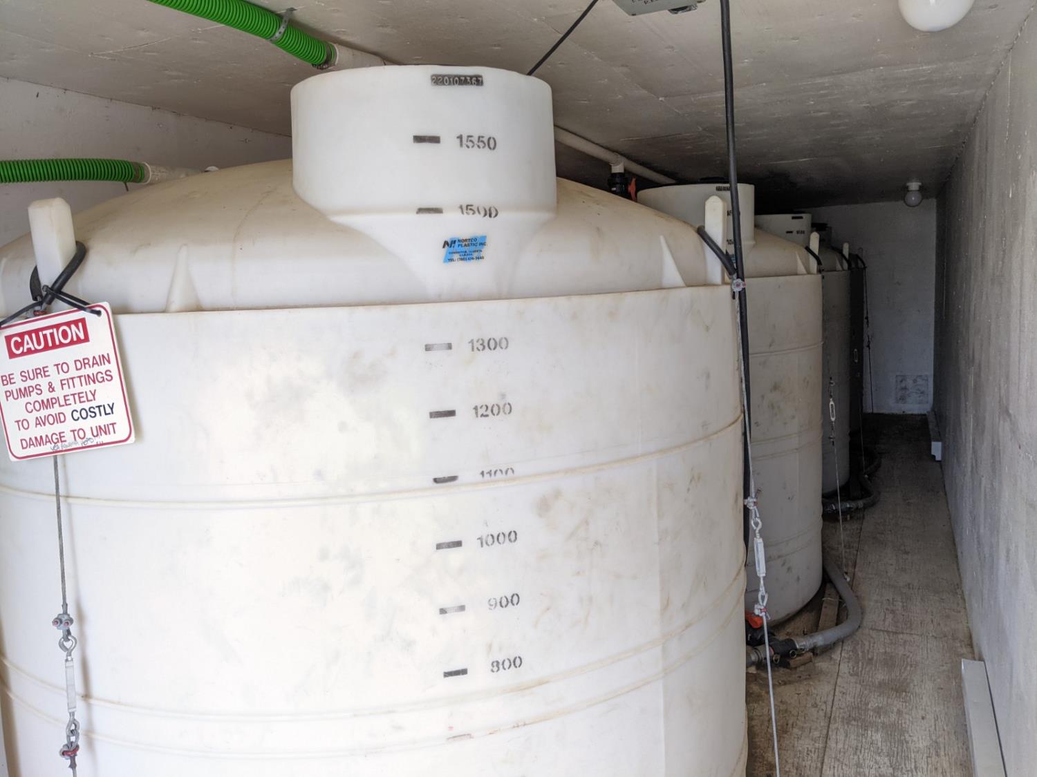 Heated and insulated, (2) pressure tanks, (2) pumps, (4) 1550 gallon tanks, 40 ft l x 10 ft w