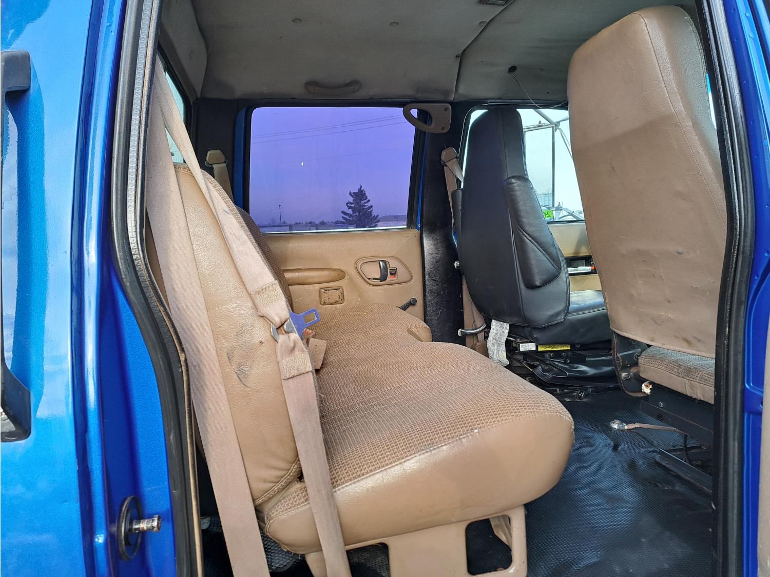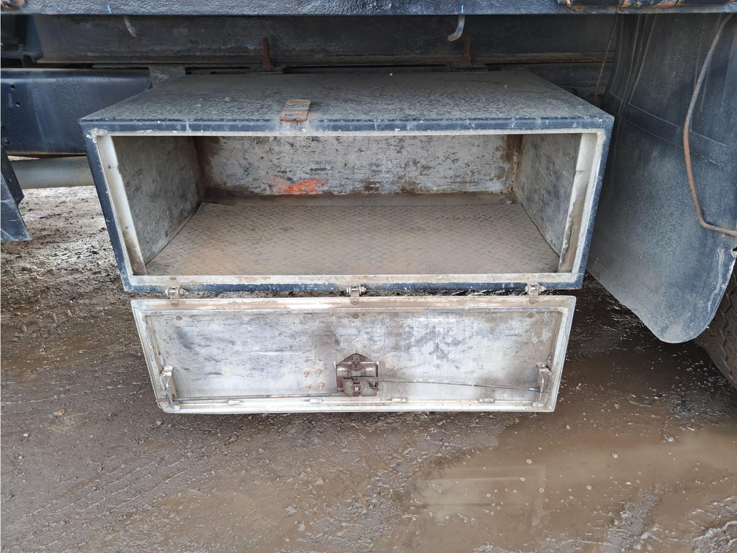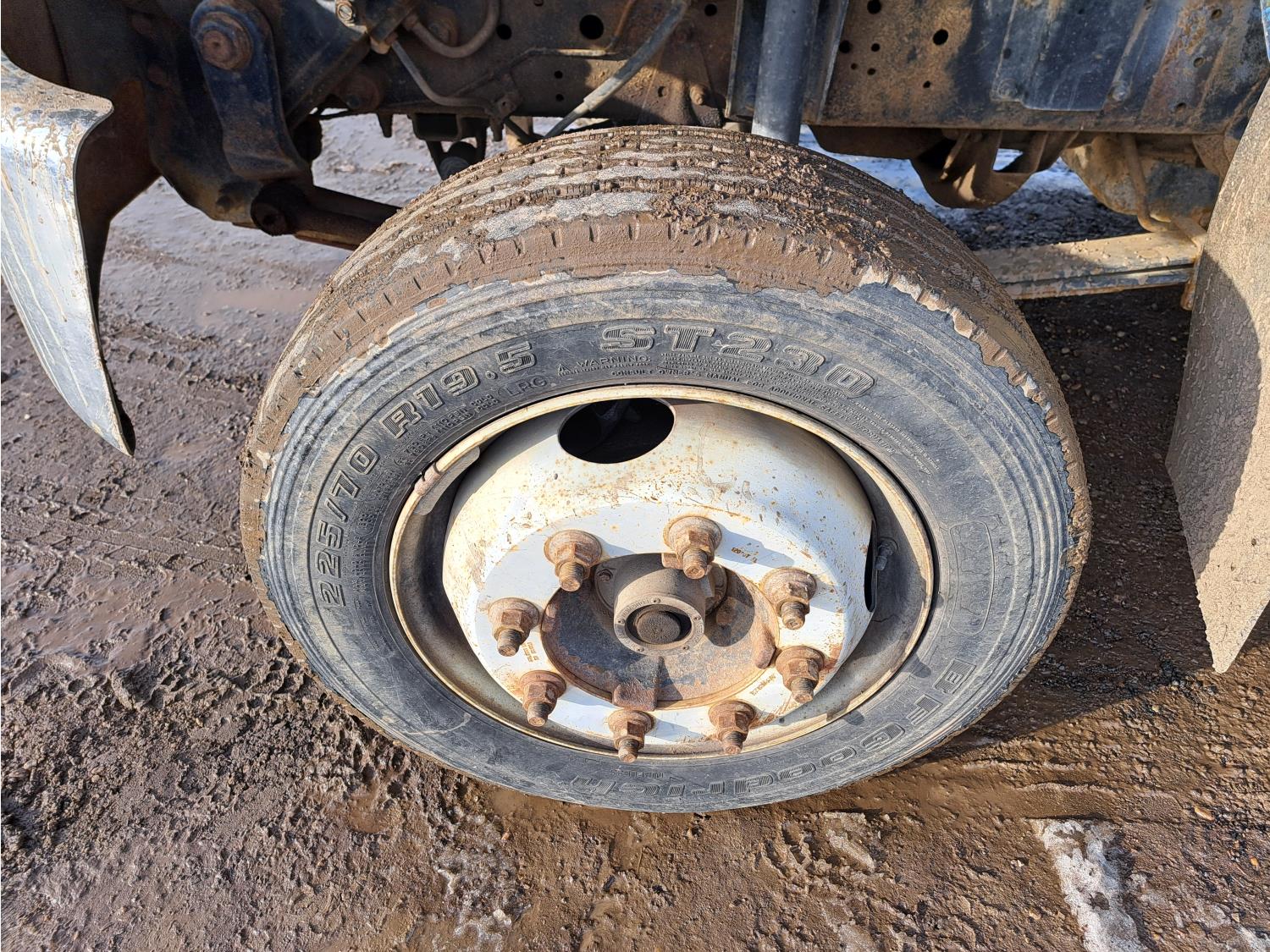 Caterpillar 3116 6.6 V8 215 HP diesel engine, electric engine block heater, 6 speed automatic transmission, A/C, air ride seats, radio, steel headache rack, steel tool boxes, 7 ft 9 inch x 11 ft 8 inch deck, single ram hoist, beacons, air ride suspension, 200 inch WB, 225/70R19.5 tires