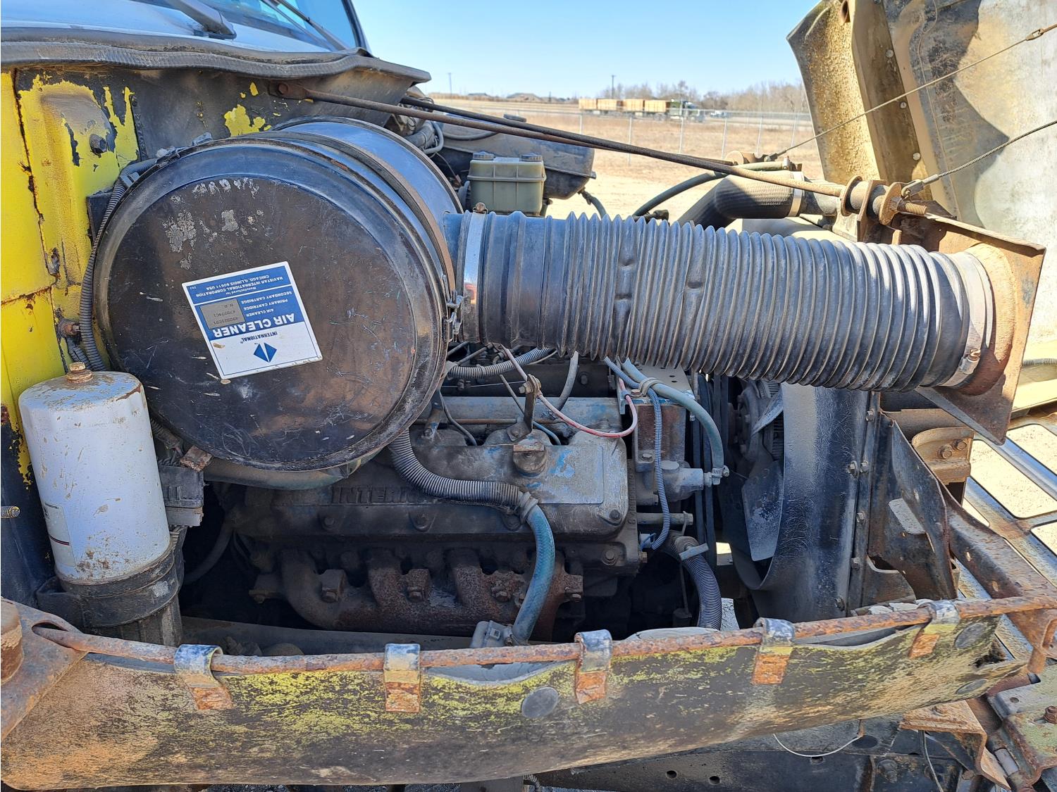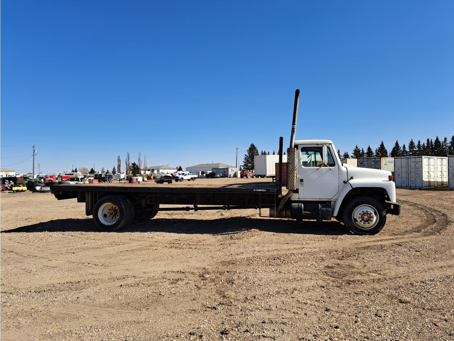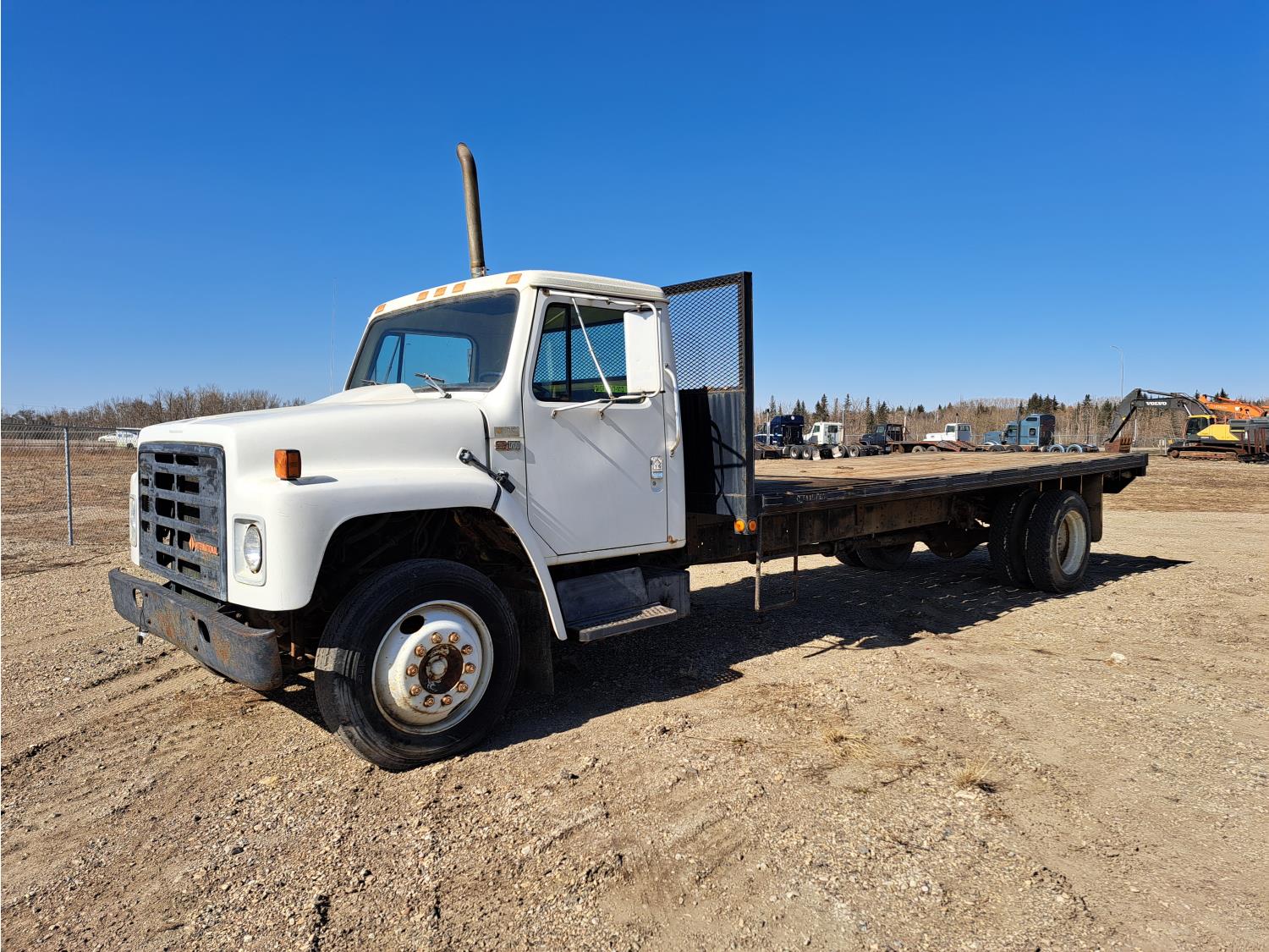 International V8 engine, electric engine block heater, 5 speed manual transmission, radio, steel headache rack, 8 ft x 20 ft deck, Stake pockets, rub rails, spring suspension, Engine circulating heater, P235/80R22 tires