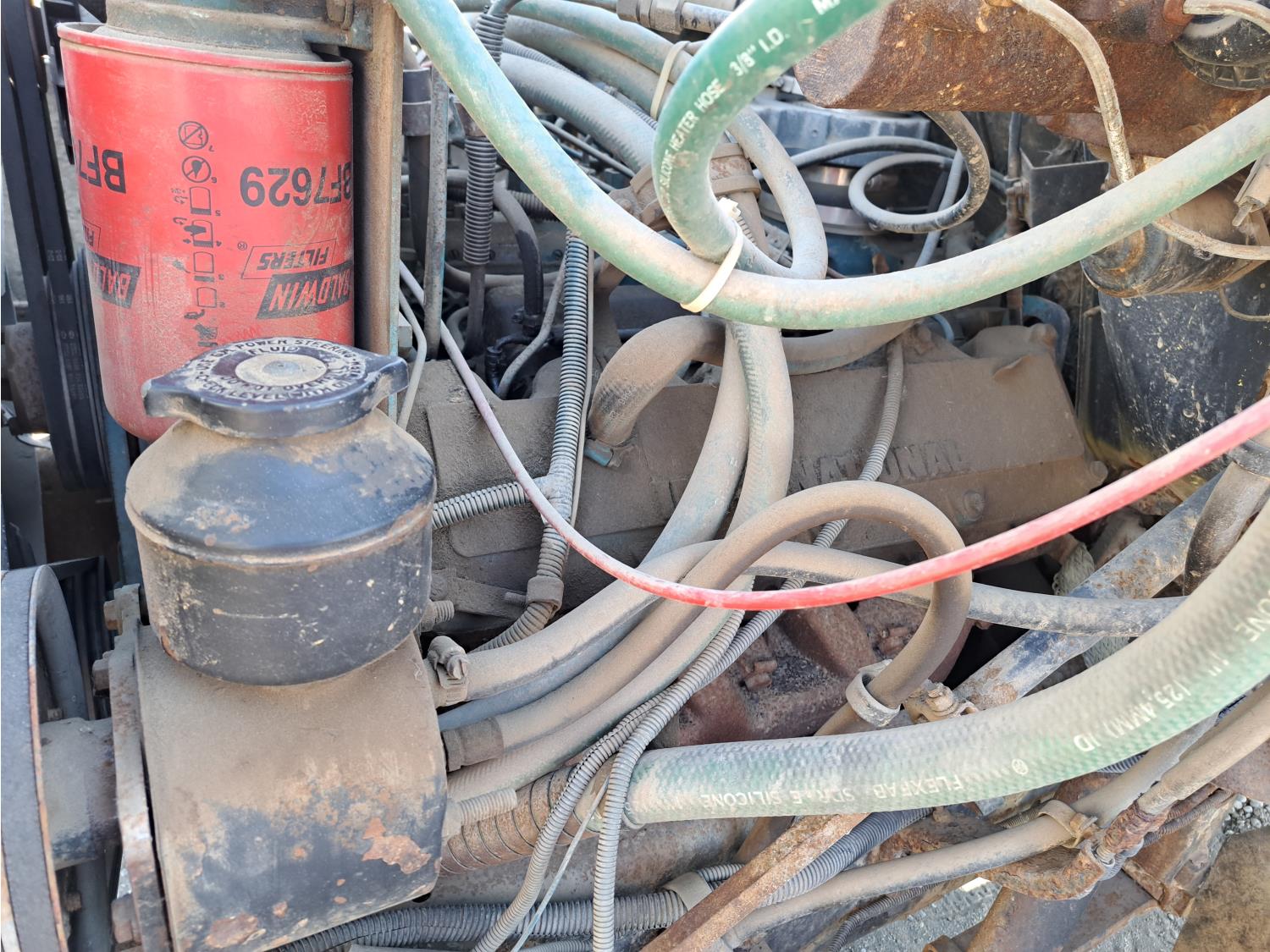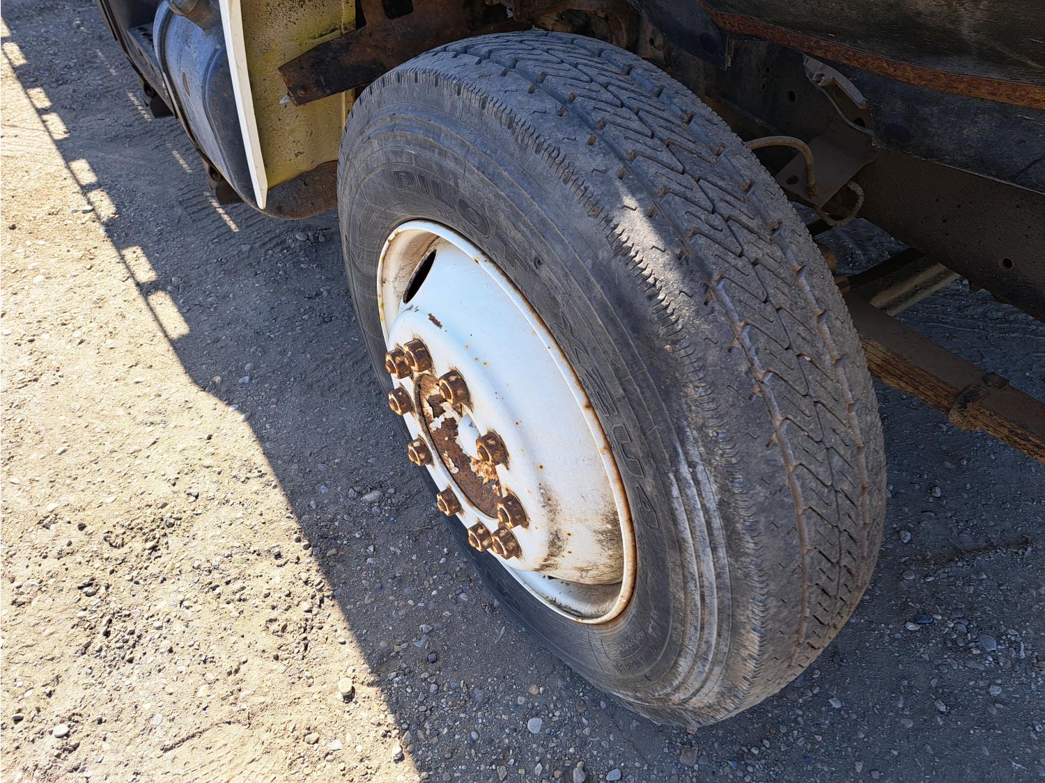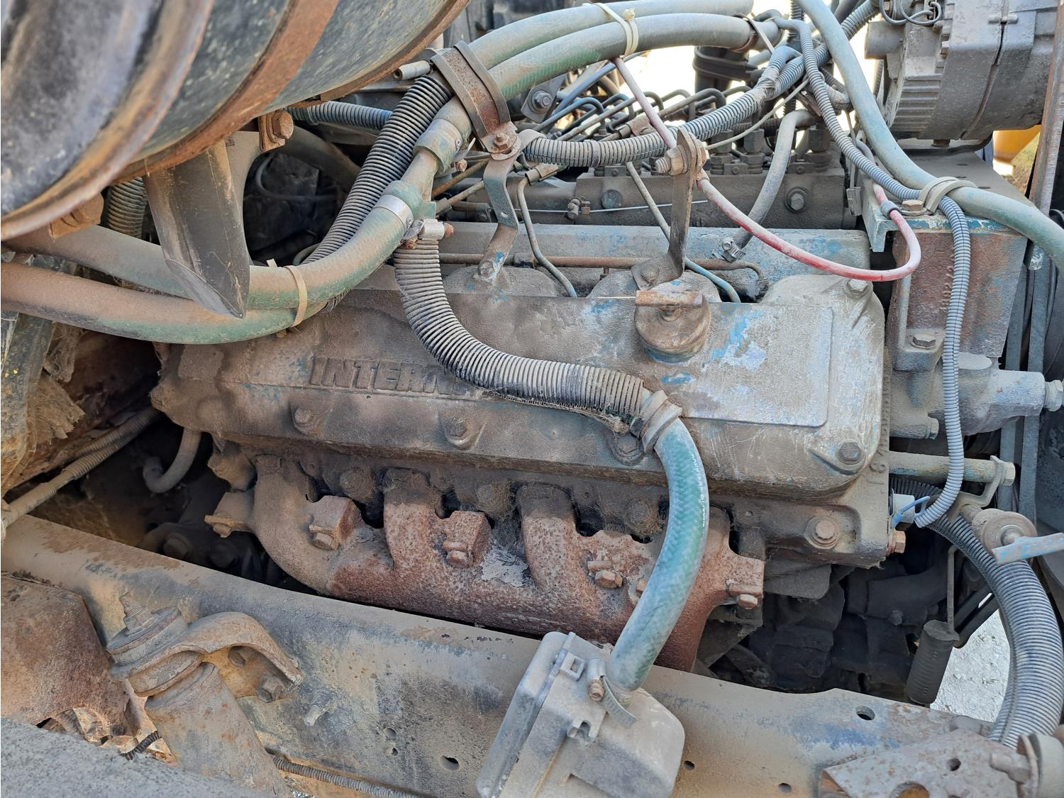 International V8 engine, electric engine block heater, 5 speed manual transmission, radio, steel headache rack, 8 ft x 20 ft deck, Stake pockets, rub rails, spring suspension, Engine circulating heater, P235/80R22 tires