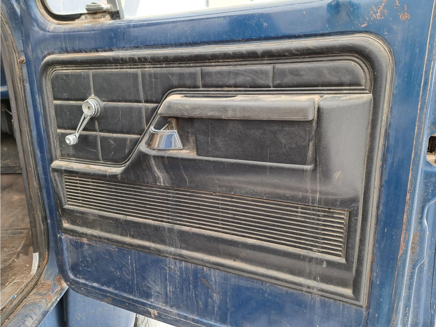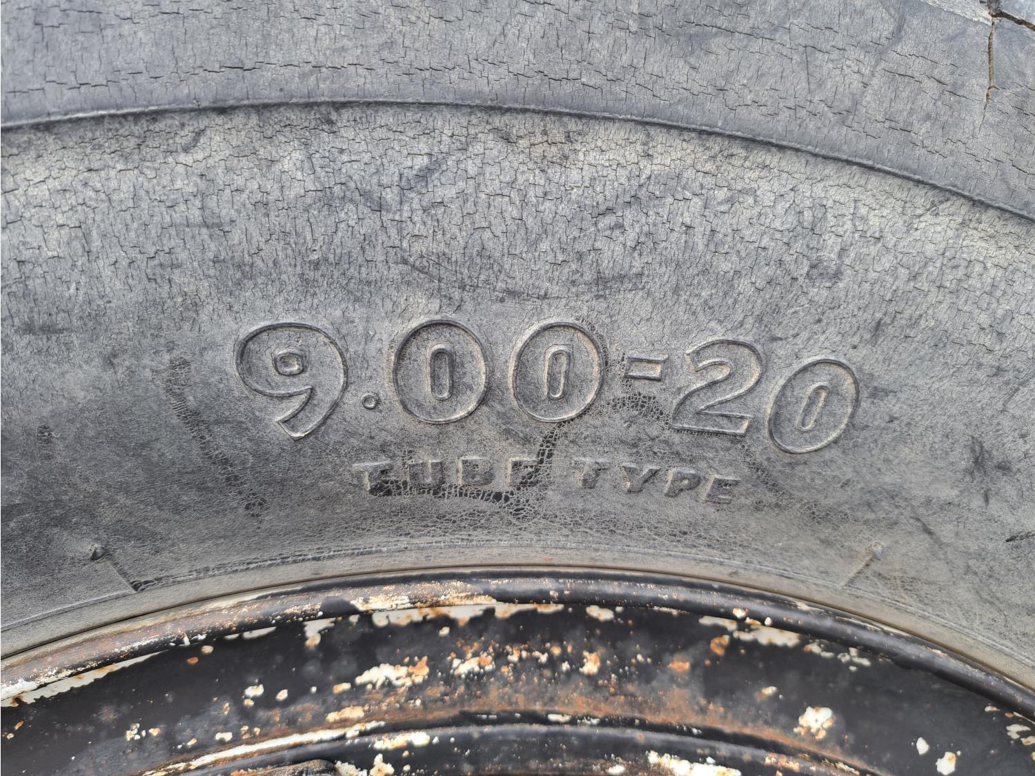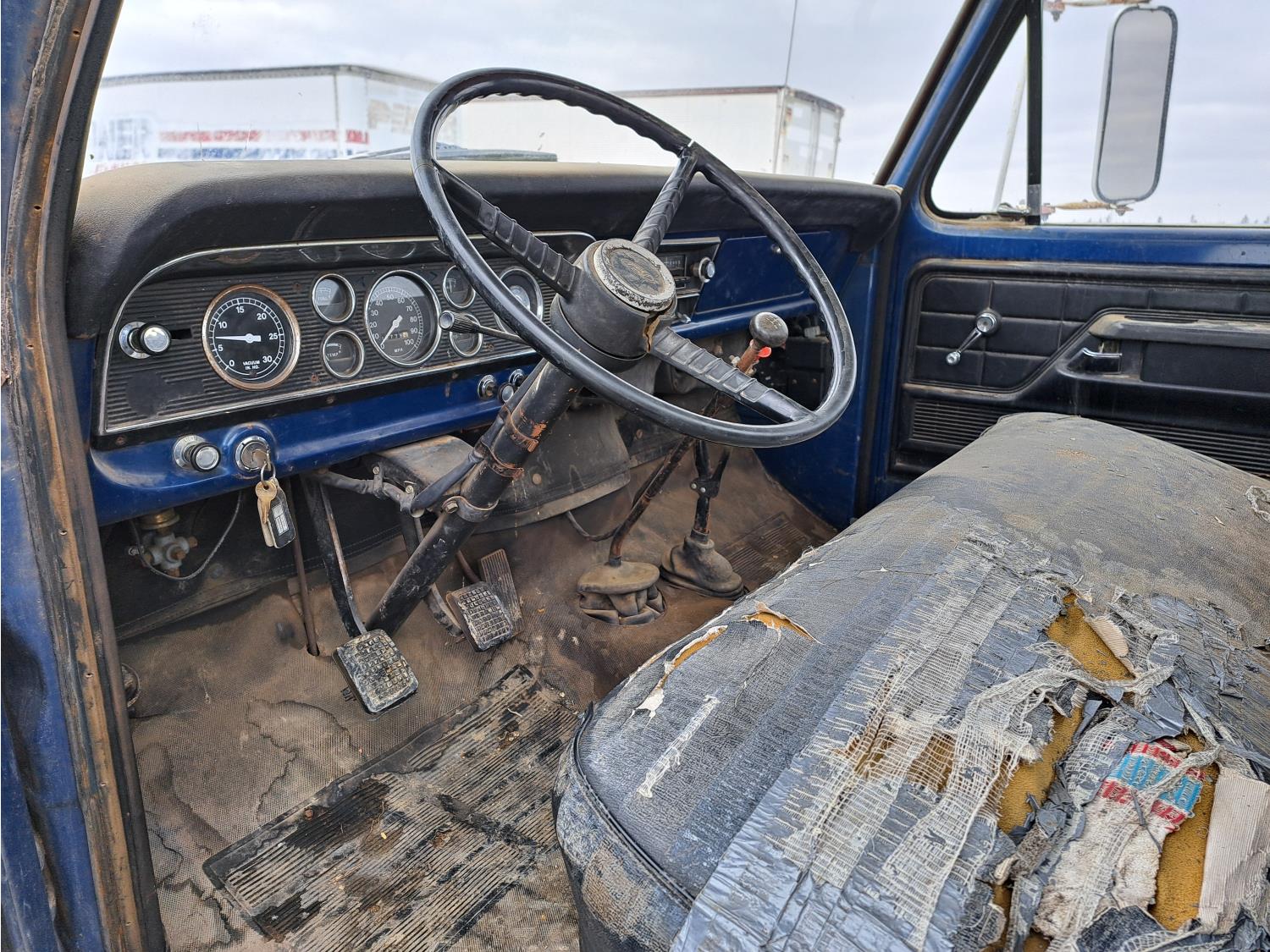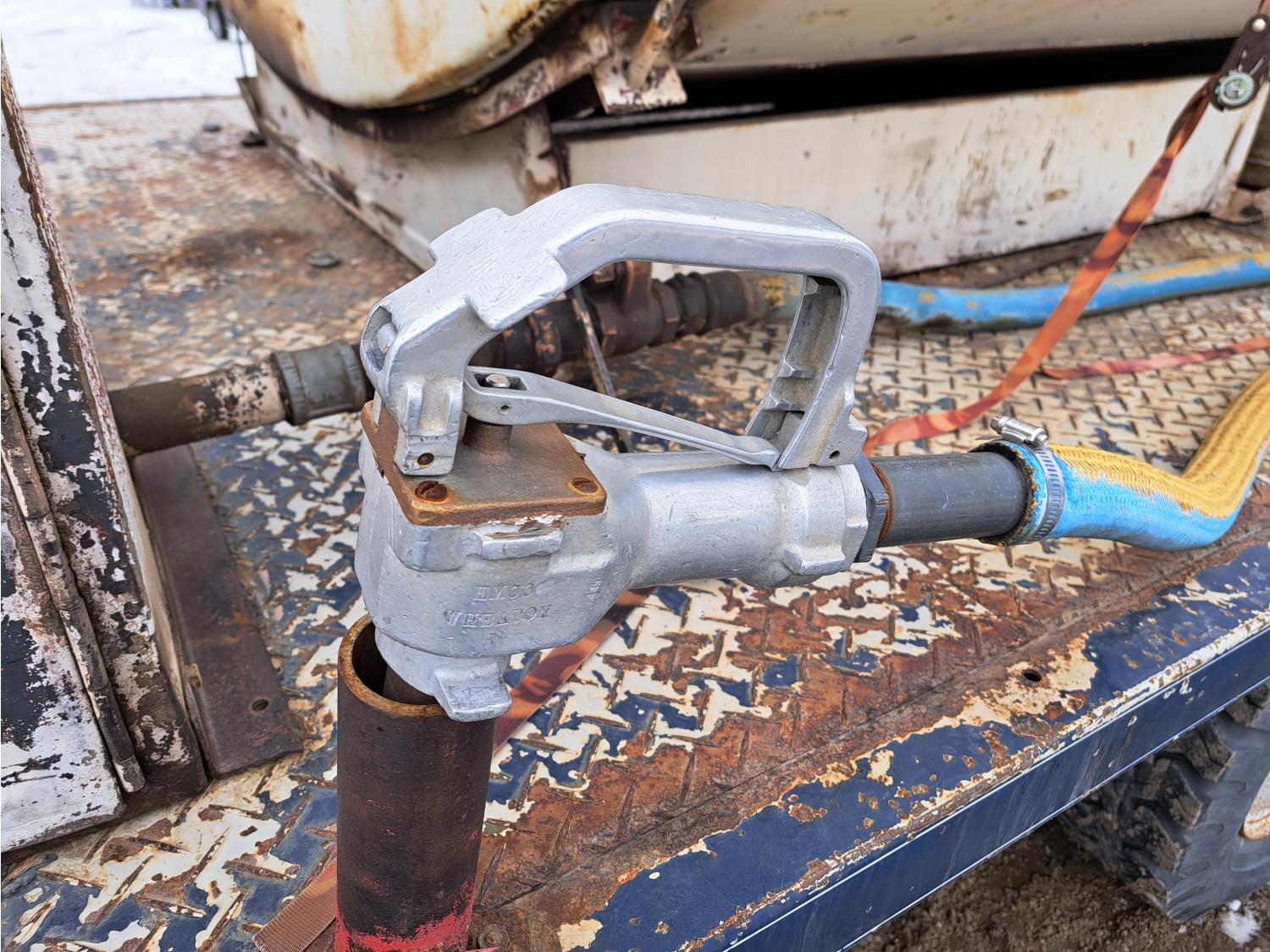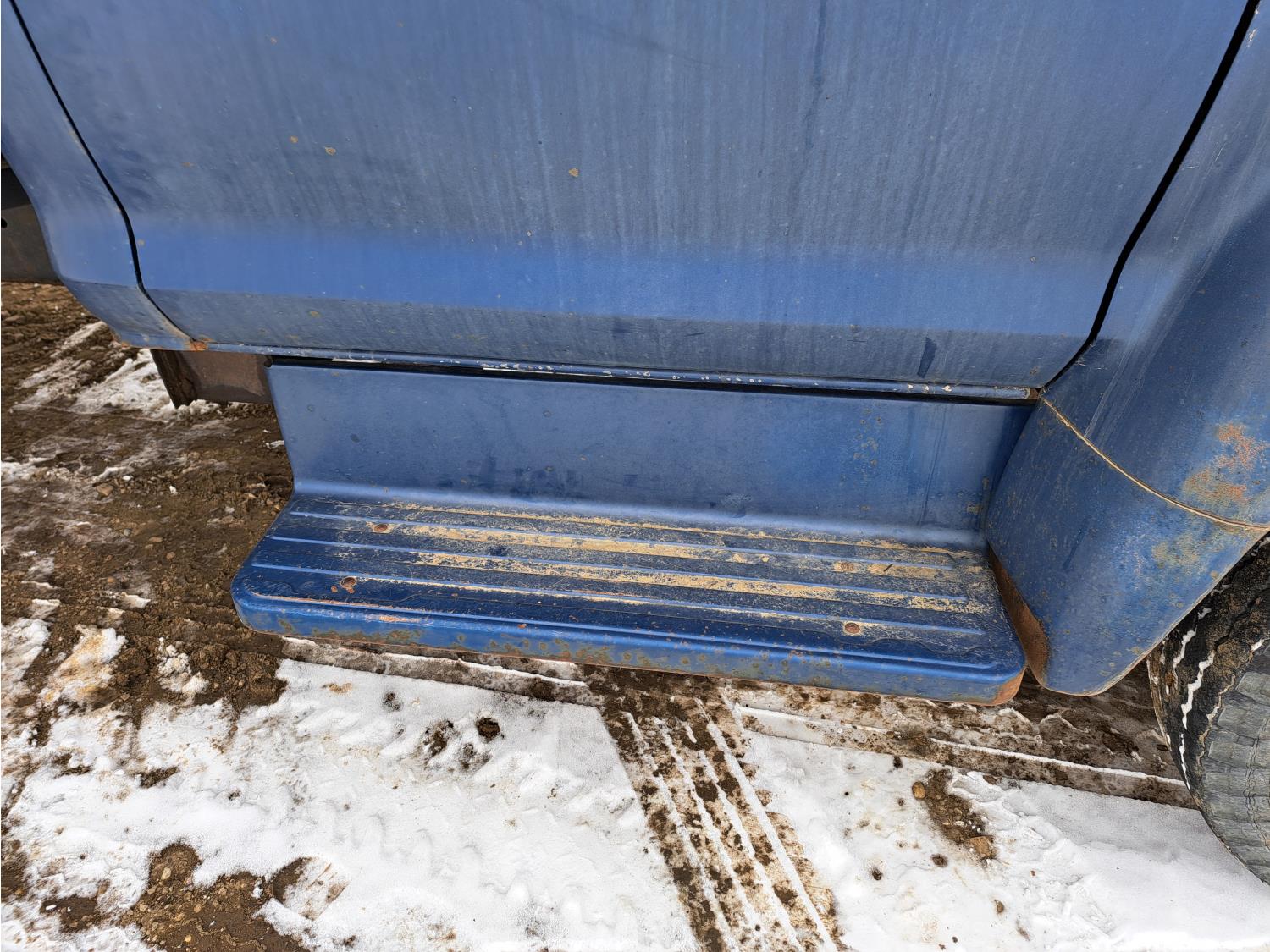 Ford 330 cu in V8 gas engine, 4 speed manual transmission, 8 ft 6 inch x 14 ft deck, 300 & 500 gallon fuel tanks, fuel pump with meter, hose with nozzle, spring suspension, 176 inch WB, 2 speed axle, 9.00-20 tires