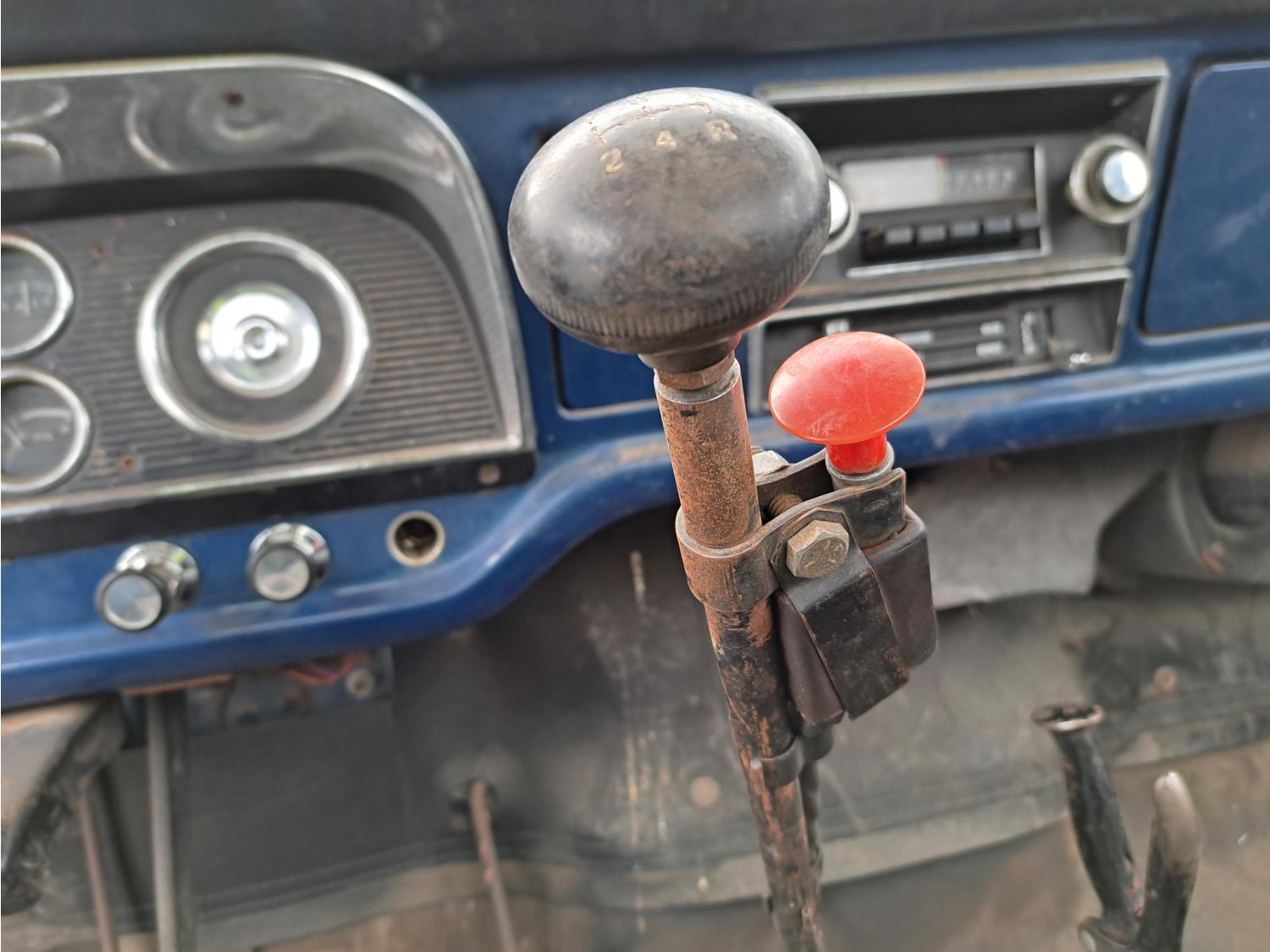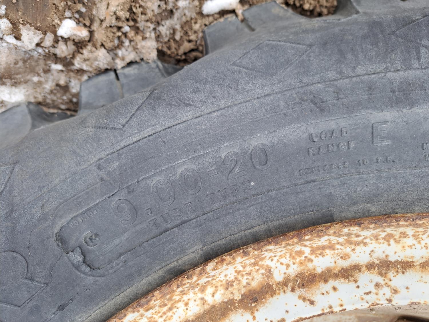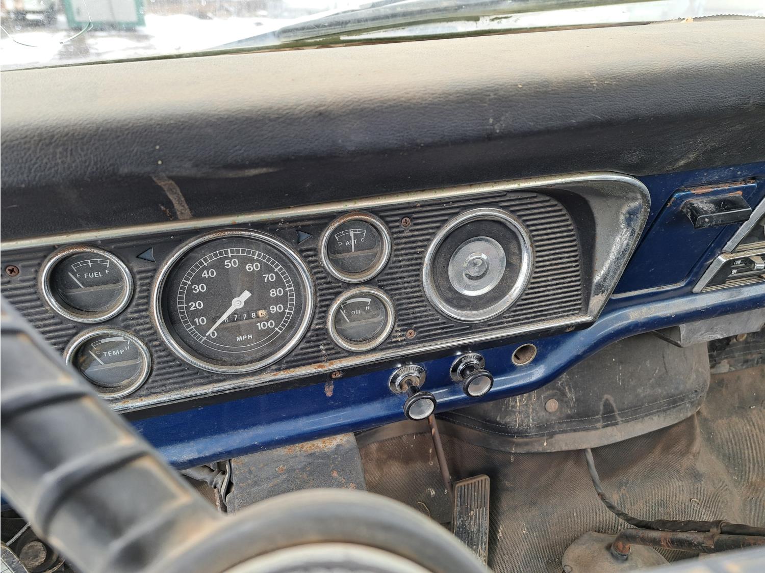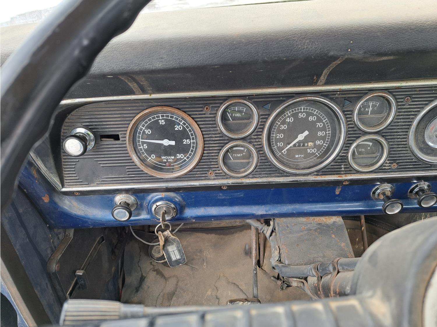 Ford 330 cu in V8 gas engine, 4 speed manual transmission, 8 ft 6 inch x 14 ft deck, 300 & 500 gallon fuel tanks, fuel pump with meter, hose with nozzle, spring suspension, 176 inch WB, 2 speed axle, 9.00-20 tires