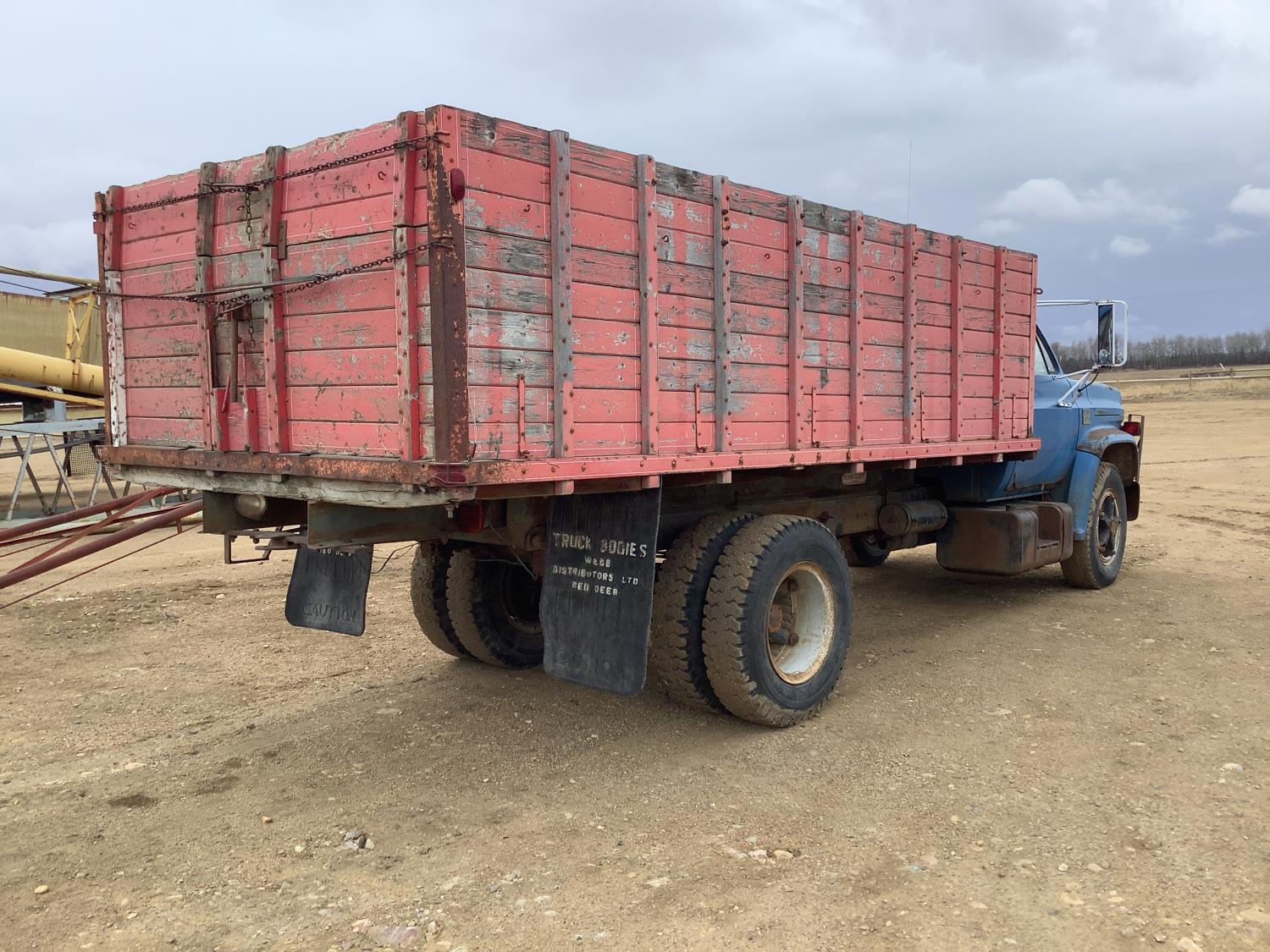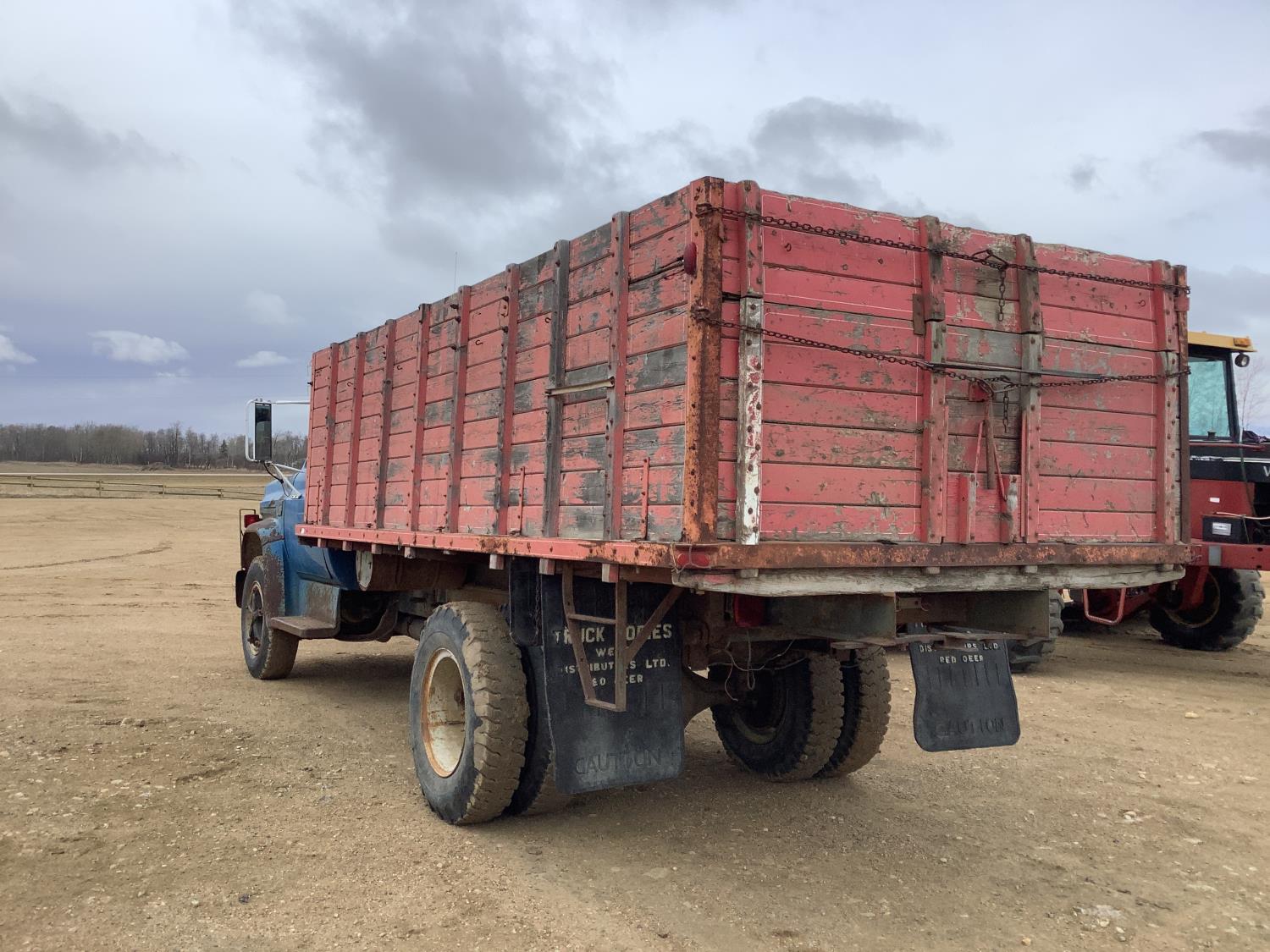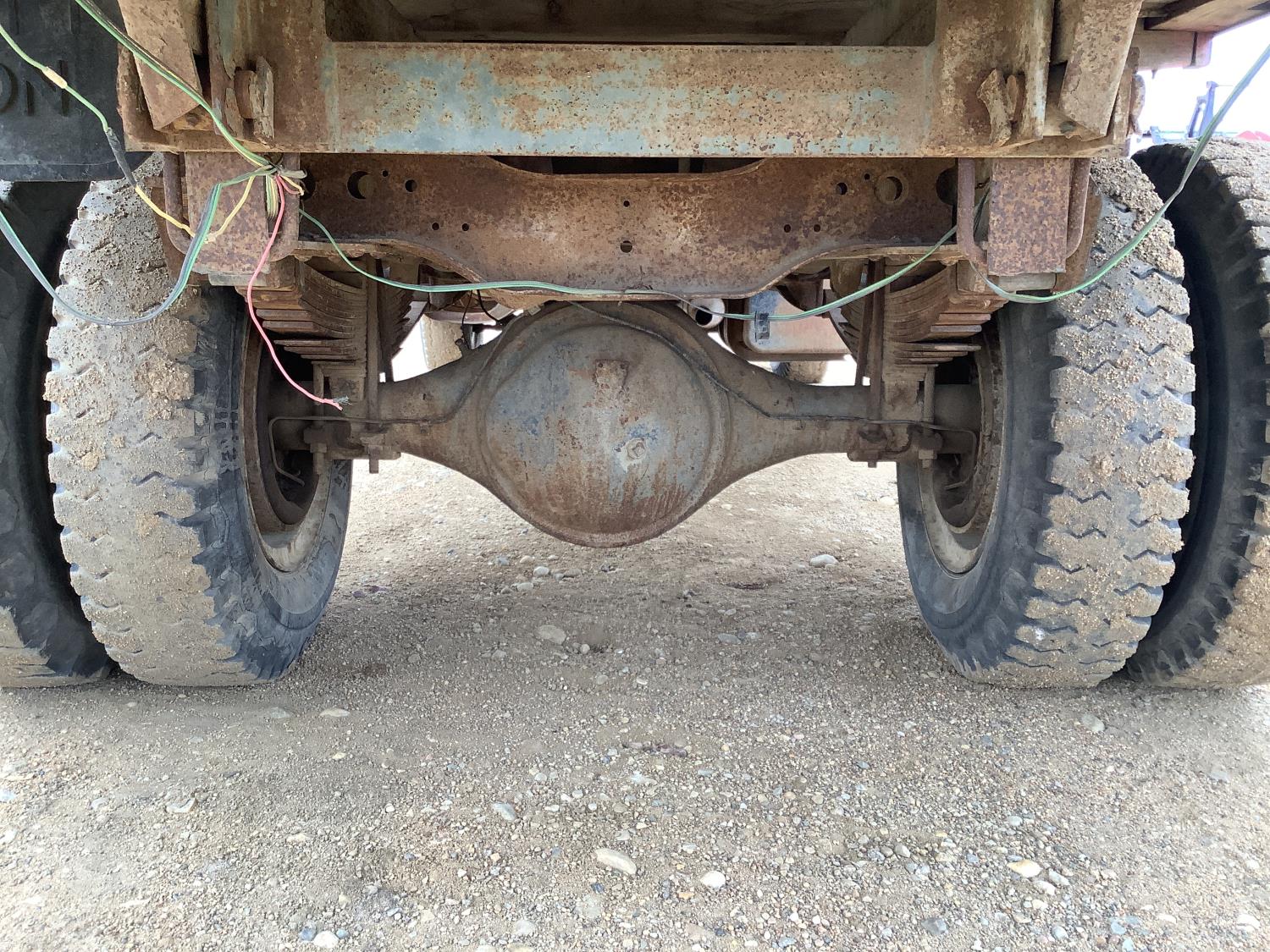GMC 366 cu in V8 gas engine, 5X2 manual transmission, 16' wood box with hoist, hydraulic brakes, 7,000 lb front axle, 16,000 lb rear axles, 9.00-20 tires
