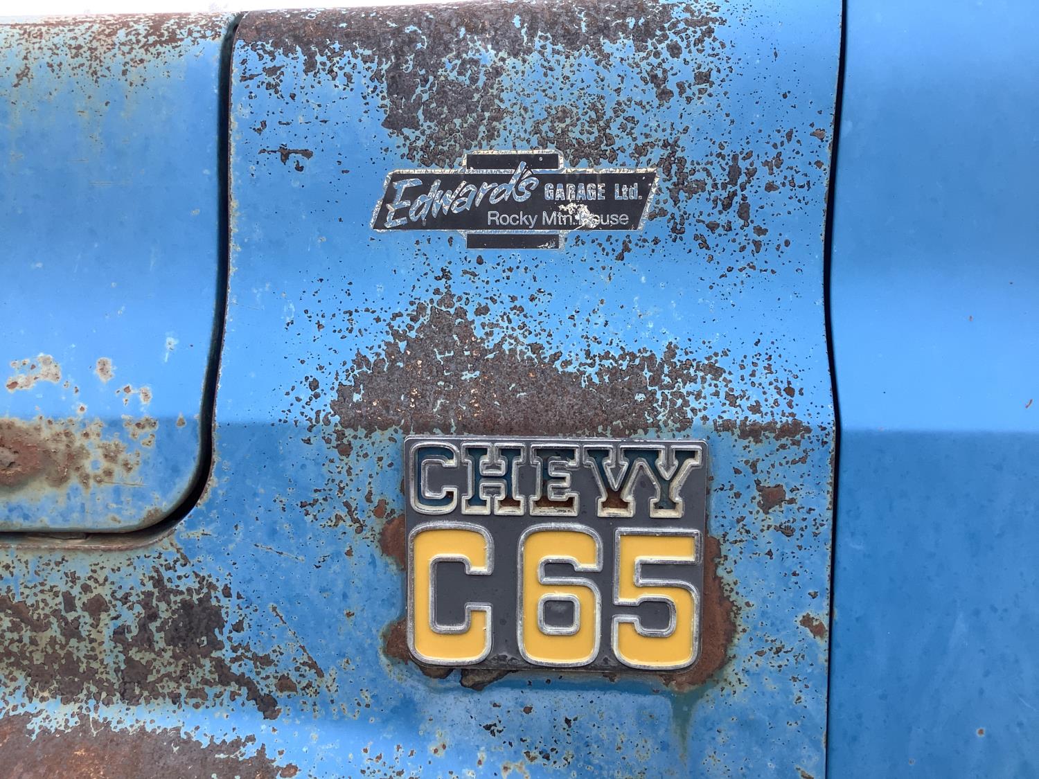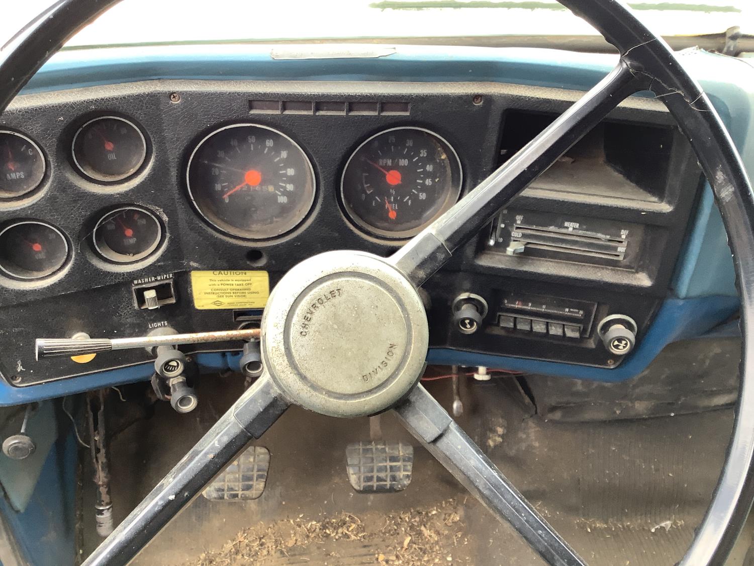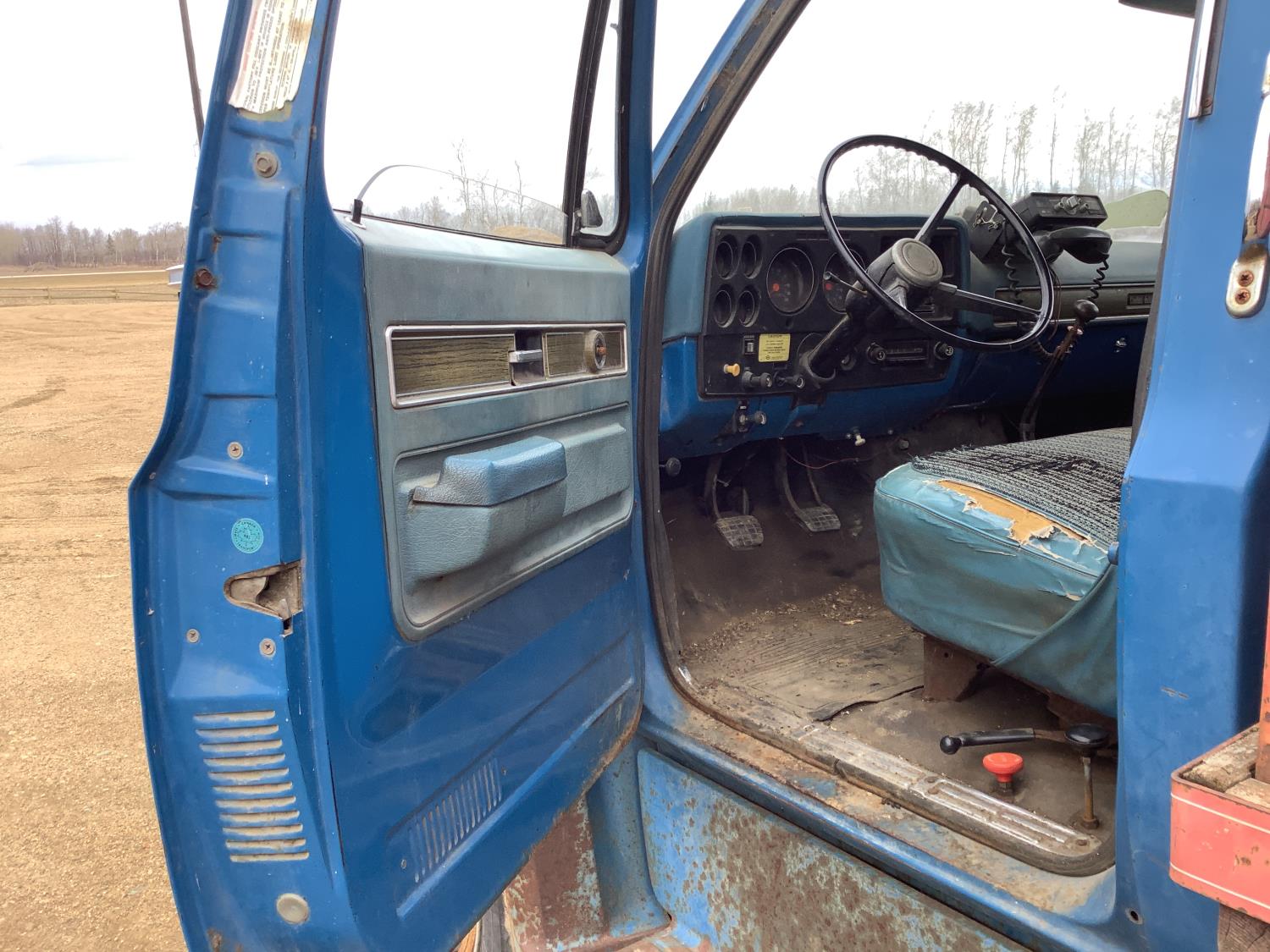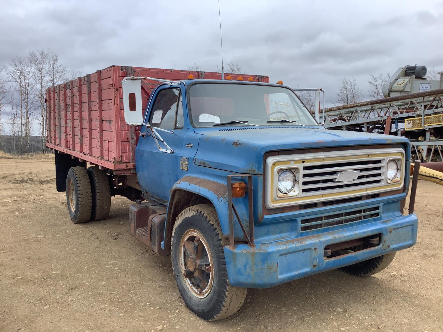 GMC 366 cu in V8 gas engine, 5X2 manual transmission, 16' wood box with hoist, hydraulic brakes, 7,000 lb front axle, 16,000 lb rear axles, 9.00-20 tires