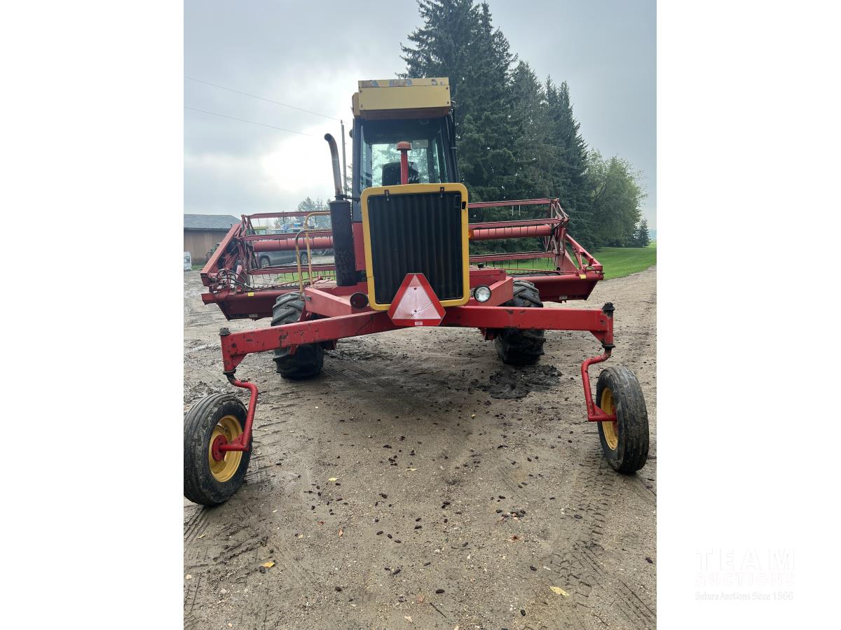 18 ft header, 3.3L Ford 6 cylinder gas engine, hydrostatic drive, cab with A/C and heat, pickup reel, 18.4x16 drive tires