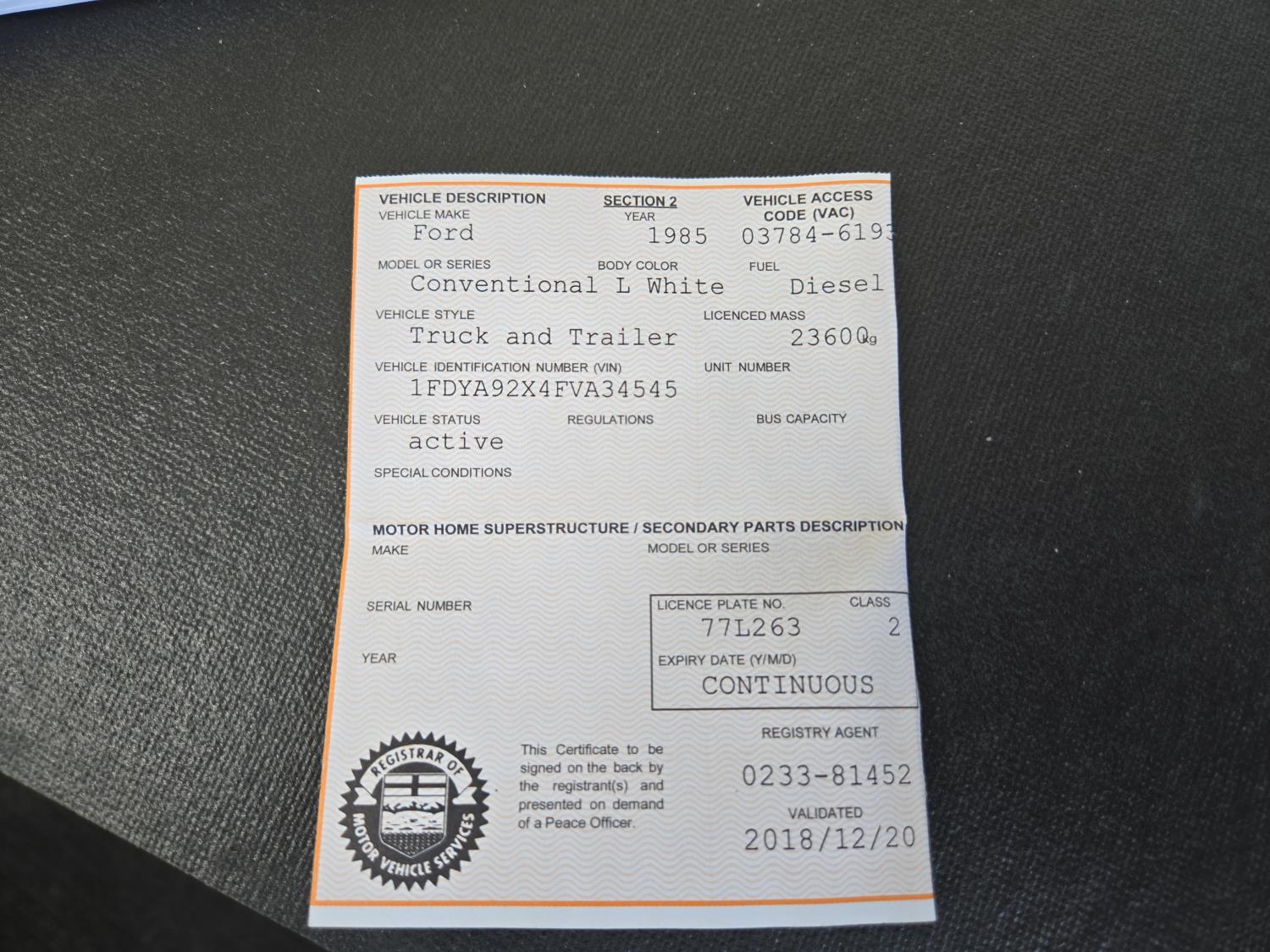 Copy of registration on hand.