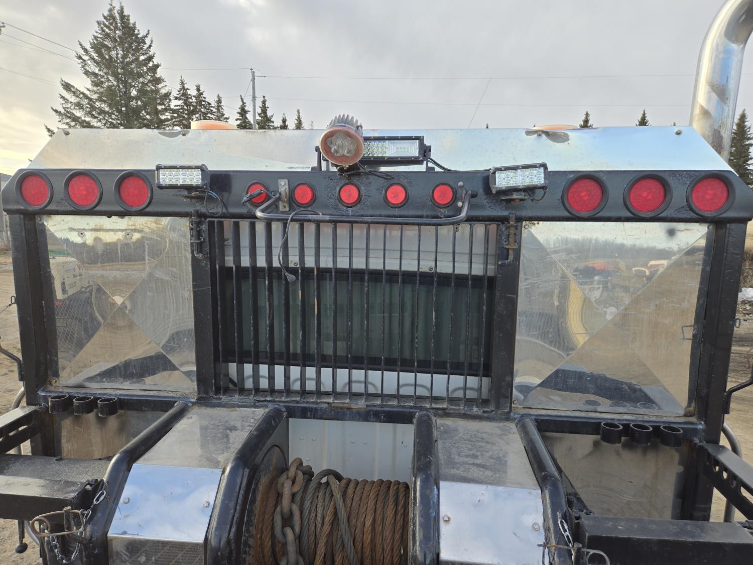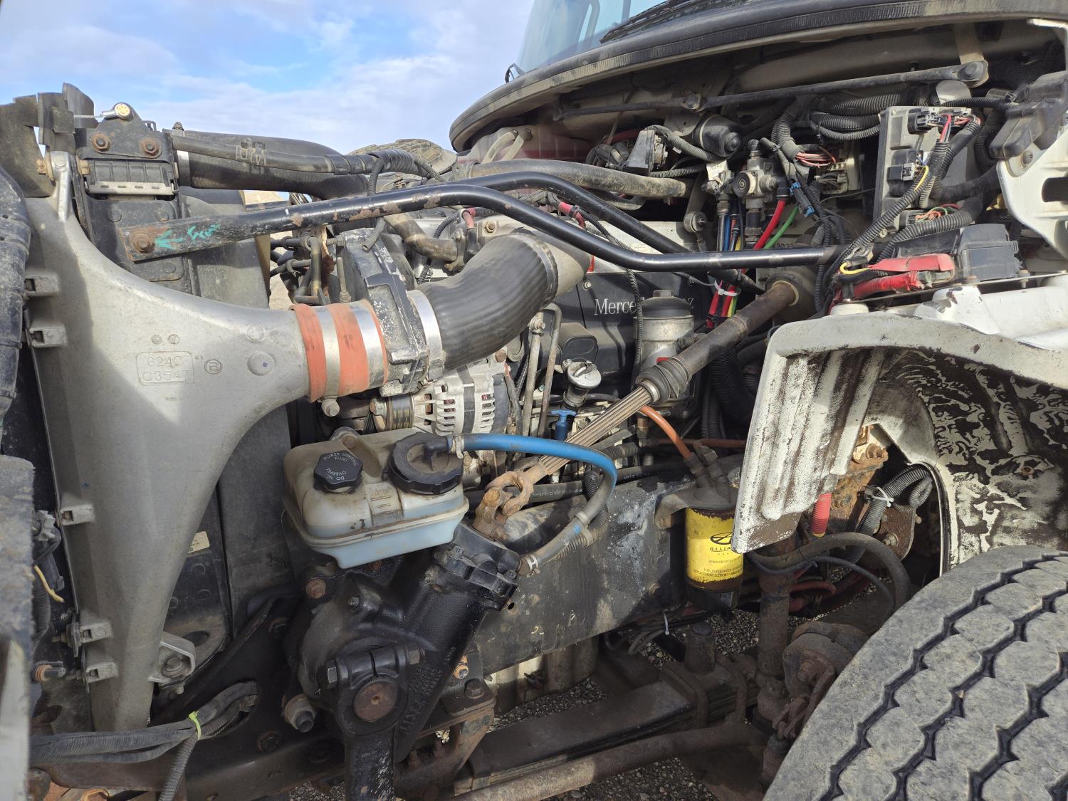 Mercedes Benz OM460 12.8 6 cylinder 450 HP engine, Eaton Fuller 18 speed manual transmission, 32 inch sleeper, A/C, leather interior, air ride driver seat, radio, hydraulic wet kit, moose bumper, Ace headache rack, chain holders, sliding 5th wheel, hydraulic winch, air ride suspension, 16,000 lb front axle, 45,400 lb rear axles, full lockers, 240 inch WB, all aluminum wheels, 385/65R22.5 tires