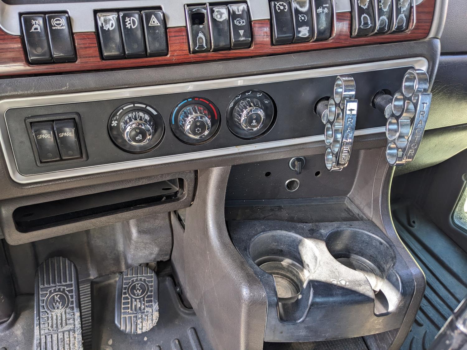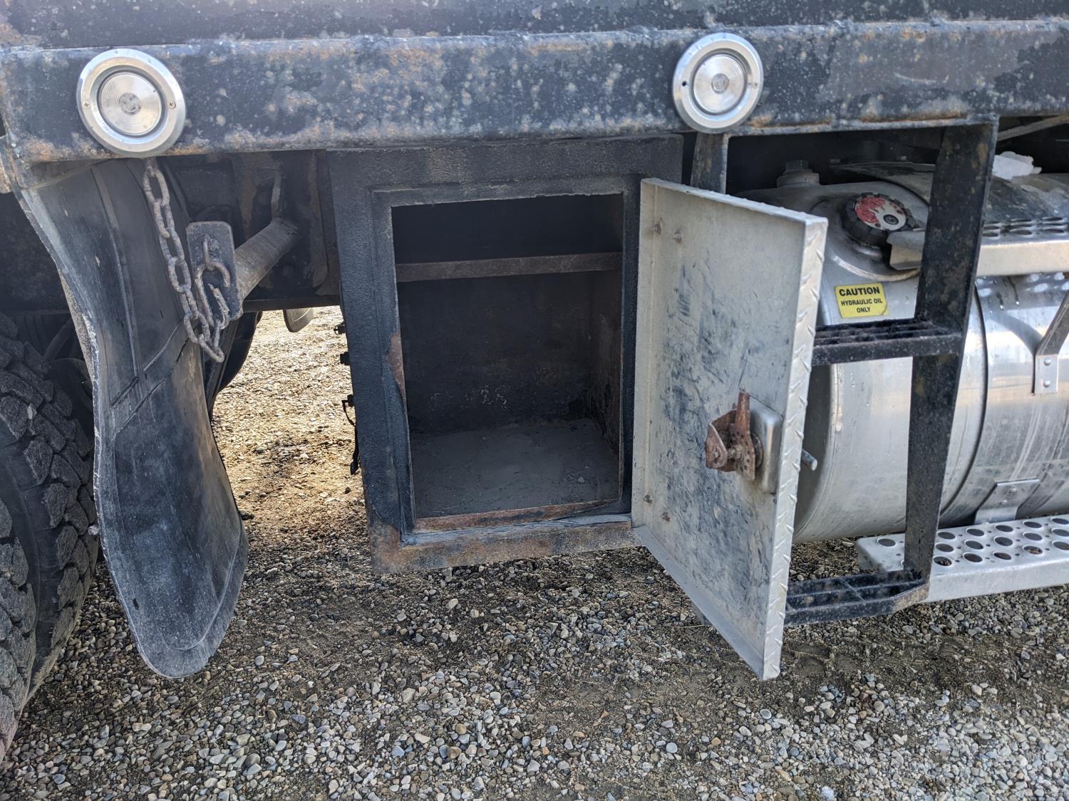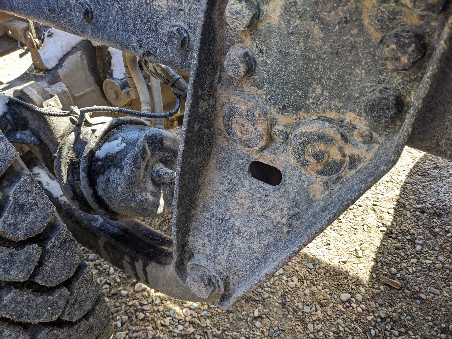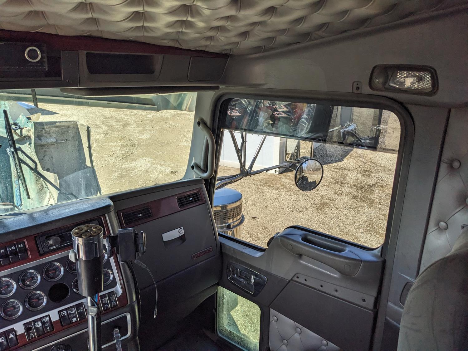 Caterpillar C15 diesel engine, Wabasto engine heater, engine brake, positive air shutoff, Eaton Fuller 18 speed manual transmission, mid rise 61 inch sleeper, A/C, cruise control, air ride seats, radio, cell booster, 2 Way hydraulic wet kit, Bandit Bar aluminum moose bumper, headache rack, tool boxes, chain holders, full deck w/ fenders, Rufnek 30 T hydraulic winch, air slide wide load sign, wide load lights, strobe lights, rear live roll, Neway air ride suspension, 16,000 lb front axle, 46,000 lb rear axles, full lockers, 4:10 ratio, 244 inch WB, all aluminum wheels, 385/65R22.5 front tires, 11R24.5 rear tires