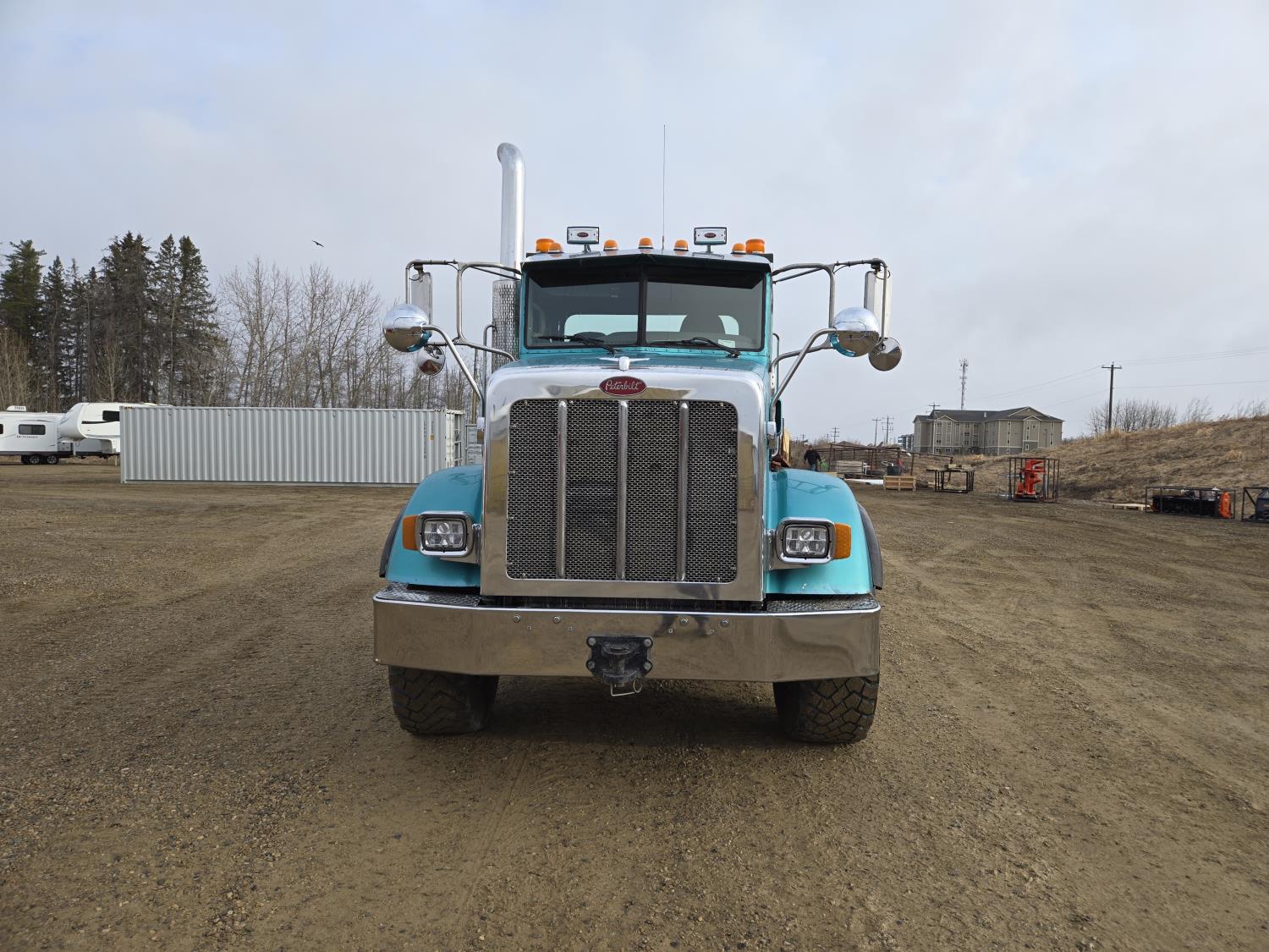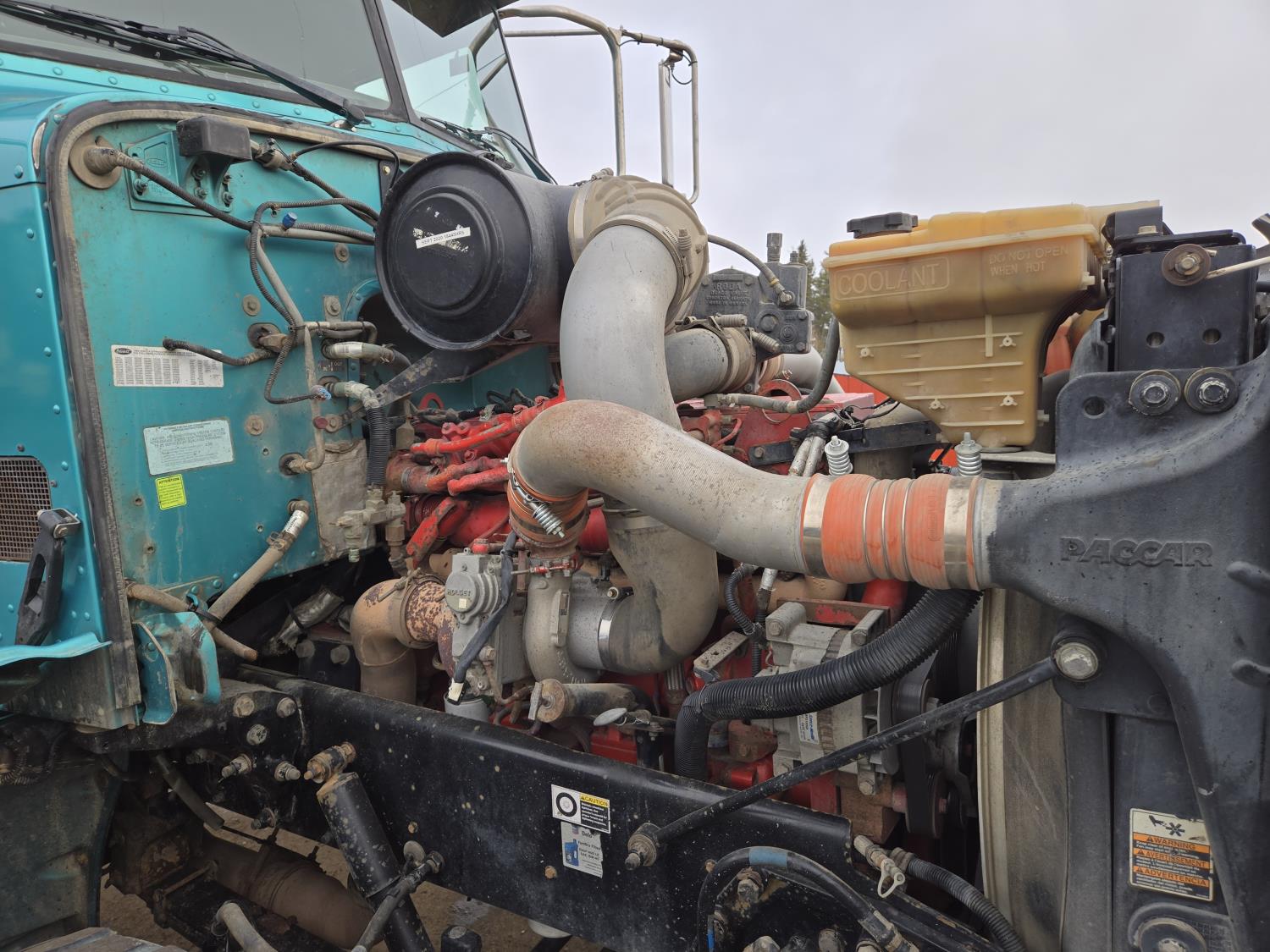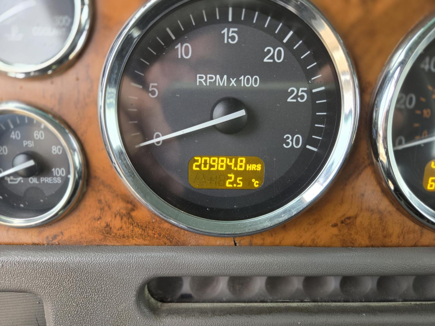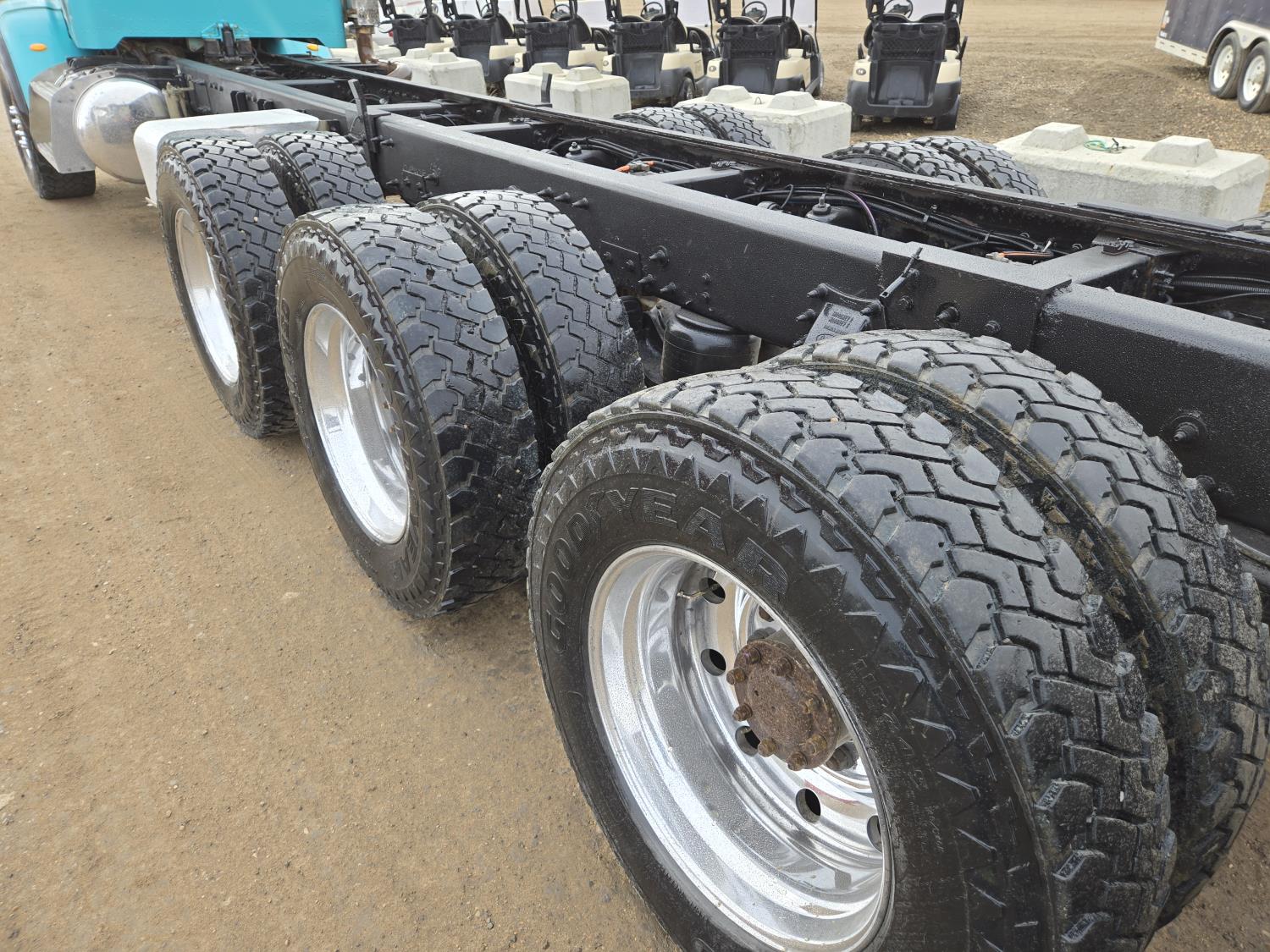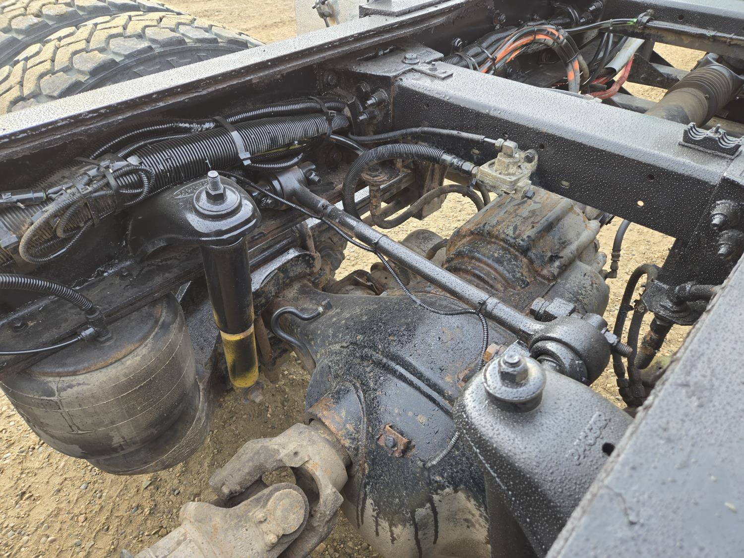 Cummins 6 cylinder 450 HP engine, Eaton Fuller 18 speed manual transmission, A/C, air ride seats, P/W, P/L, air ride suspension, 20,000 lb front axle, 51,990 lb rear axles, full lockers, 278 inch WB, all aluminum wheels, 445/65R22.5 front tires, 11R24.5 rear tires