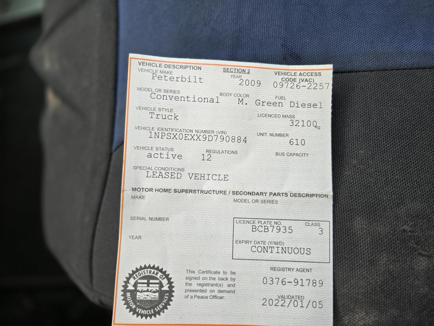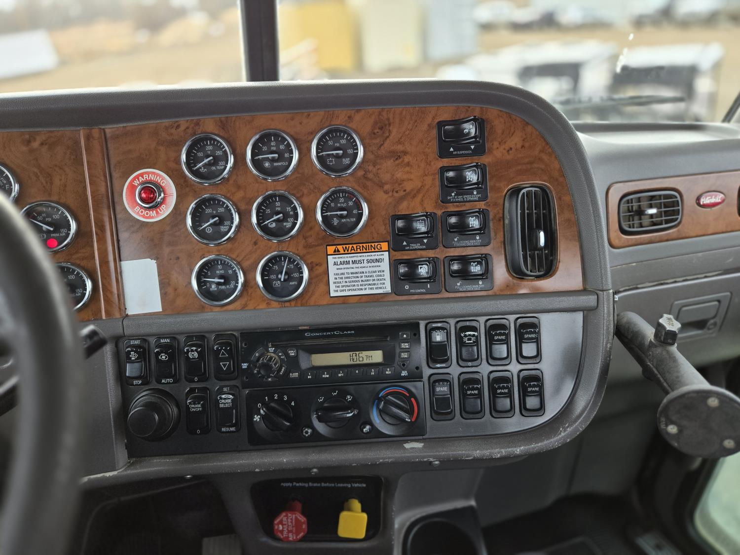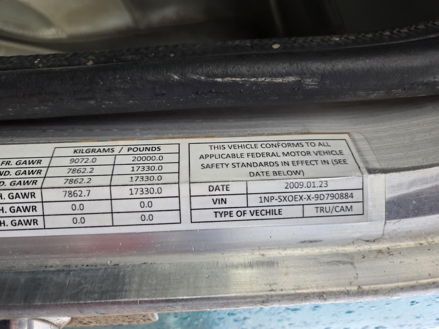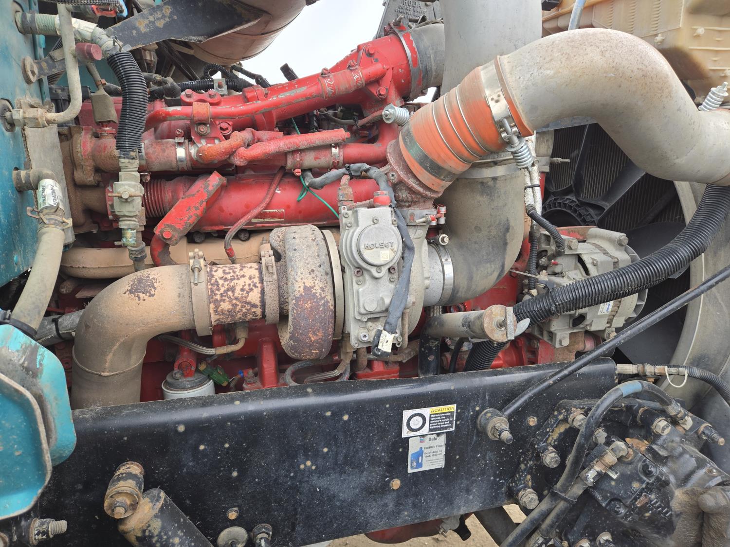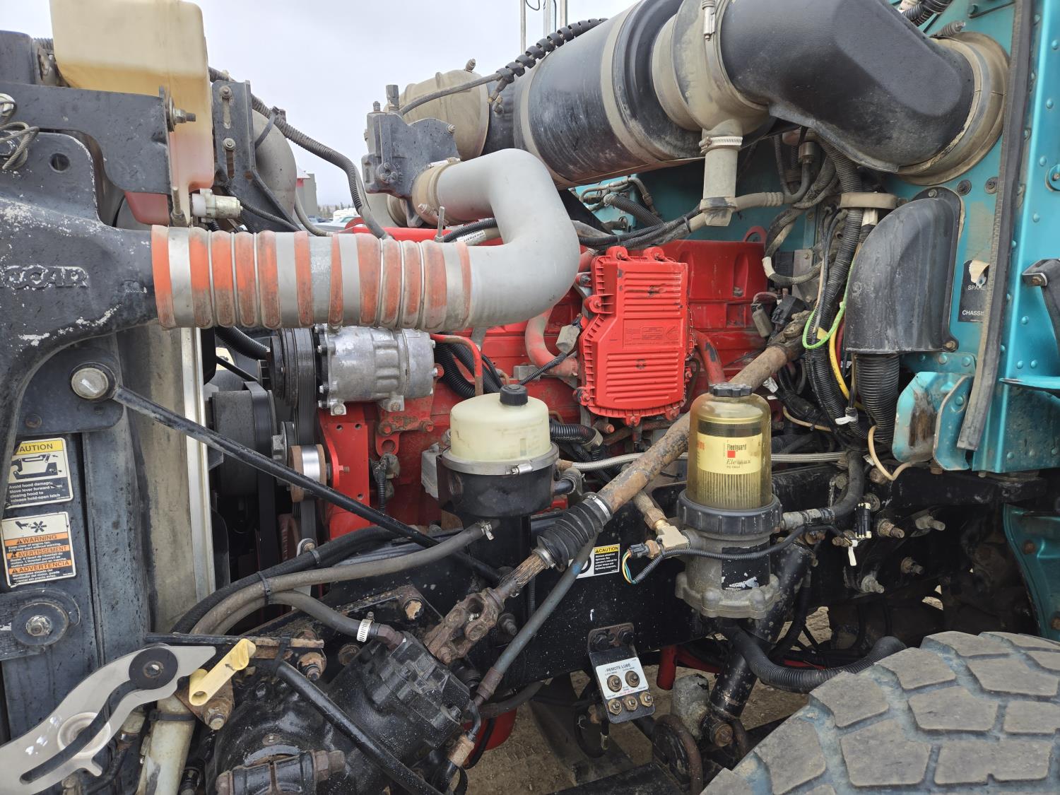 Cummins 6 cylinder 450 HP engine, Eaton Fuller 18 speed manual transmission, A/C, air ride seats, P/W, P/L, air ride suspension, 20,000 lb front axle, 51,990 lb rear axles, full lockers, 278 inch WB, all aluminum wheels, 445/65R22.5 front tires, 11R24.5 rear tires