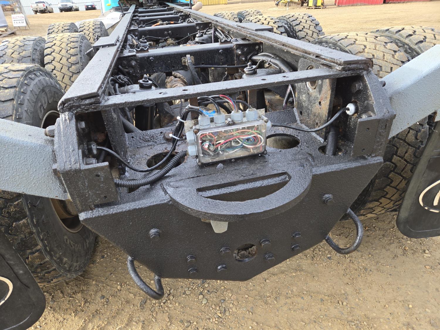 This truck was on a regular fleet maintenance program. Frame length from back of cab to end of frame is 293 inch, would easily take a 26 ft grain box or round bale deck. This is the original km and hours on this truck.