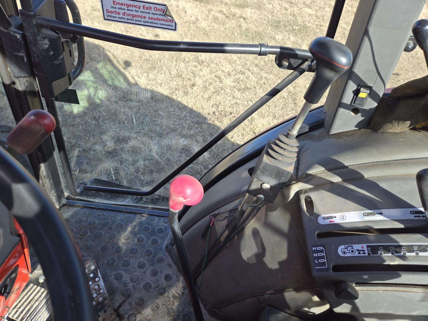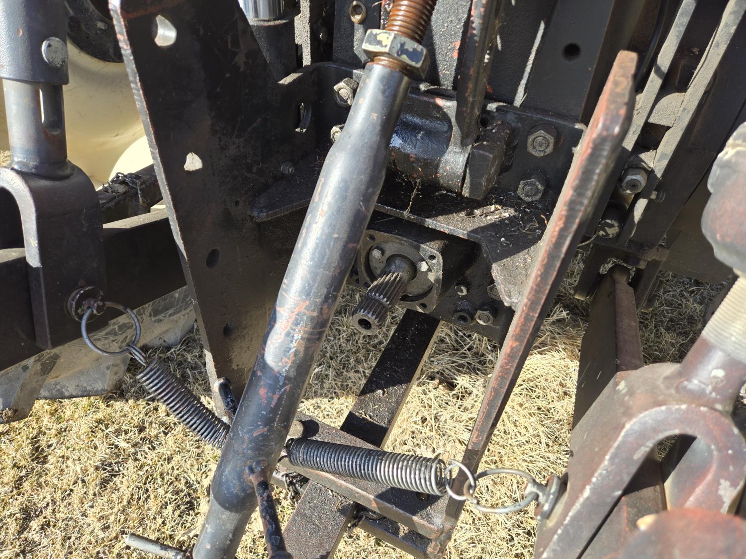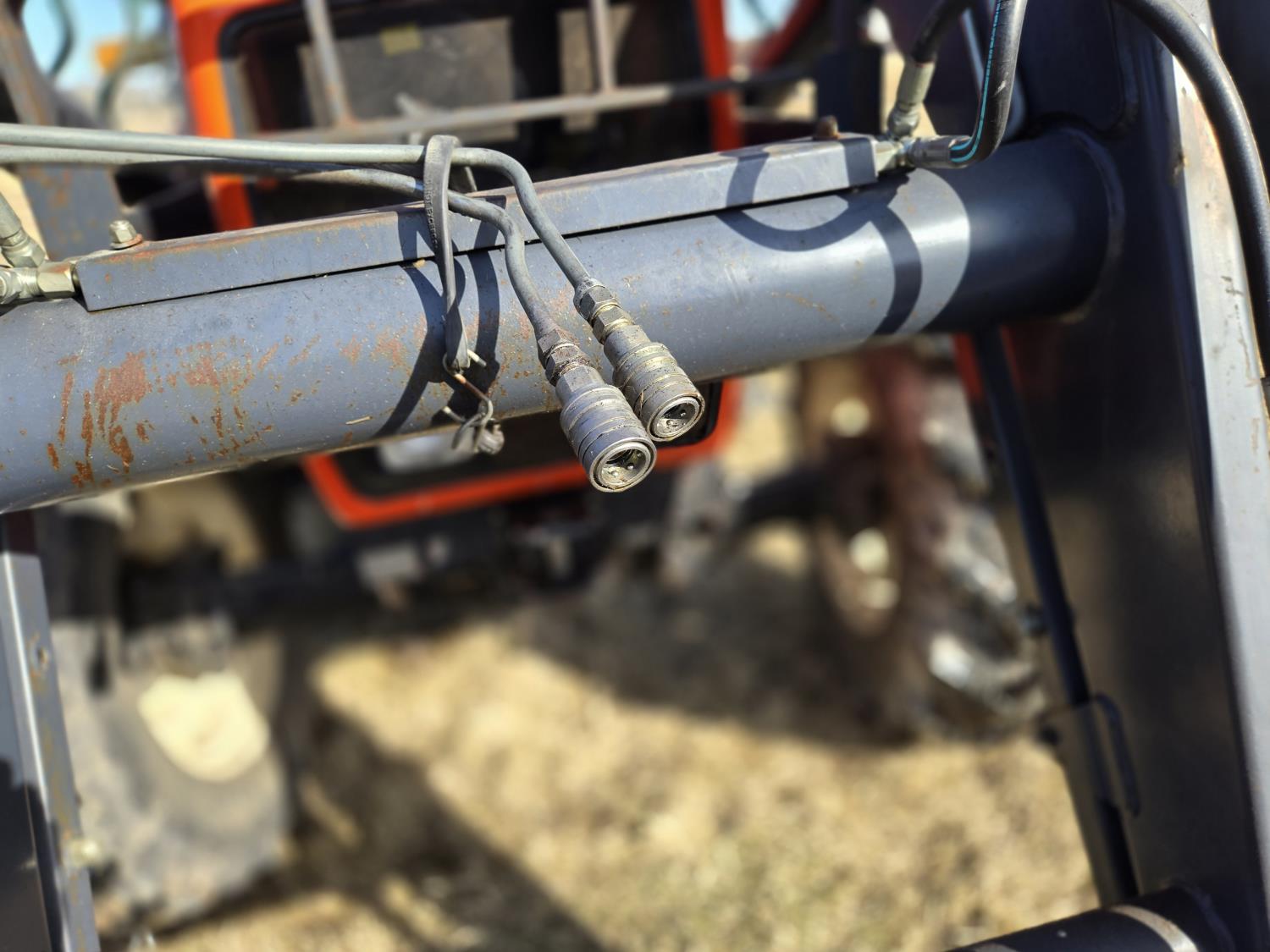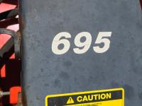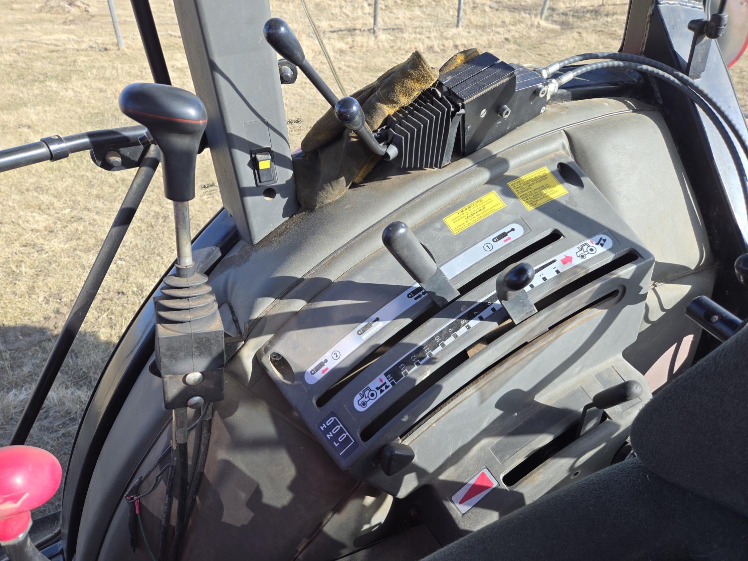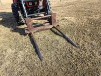 Allied 695 loader, bucket, grapple, bale forks, 4 cylinder diesel engine, 18 speed manual transmission, cab, rear differential lock, joystick, A/C, radio, 540 PTO, 3 point hitch, 2 rear hydraulic outlets, rear wheel weights, 13.6-24 front tires, 18.4R38 rear tires