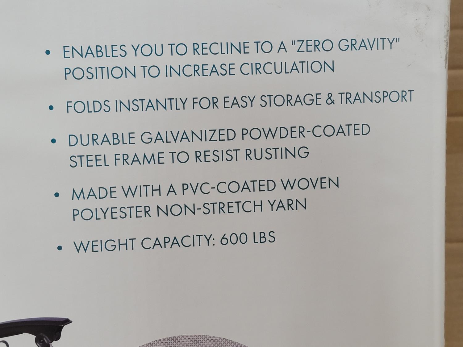 1633 2-Person Gravity Free 45 Inch Recliner (Unused)