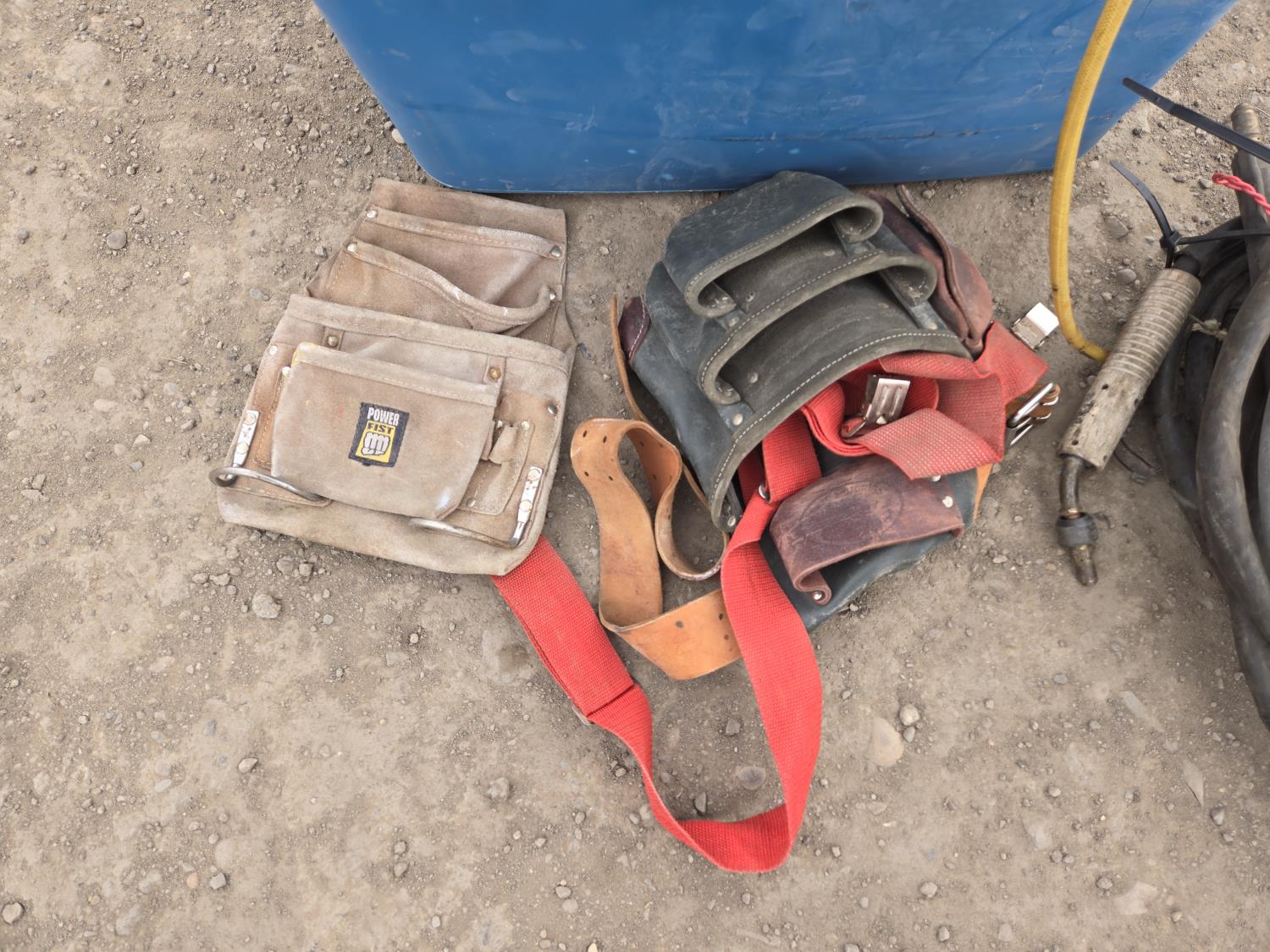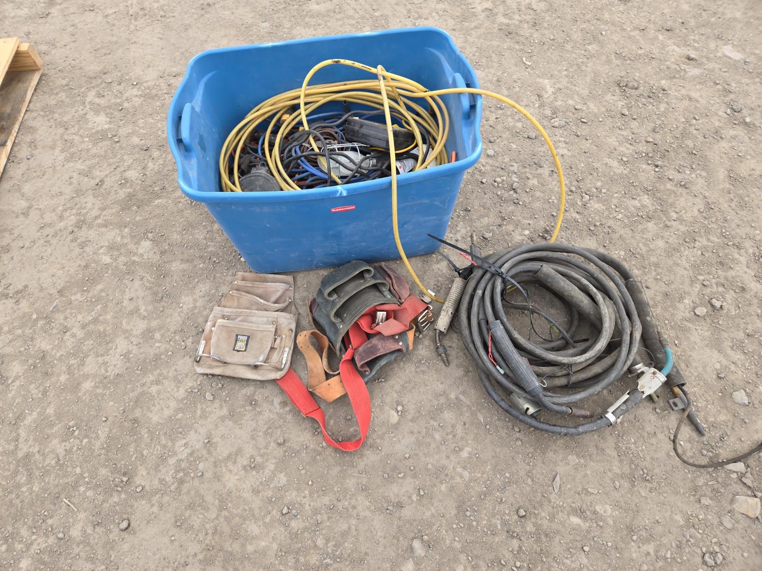 2604 (2) Tool Belts, Qty of Trouble Light & Extension Cords, Mig Welder Cords with Nozzles