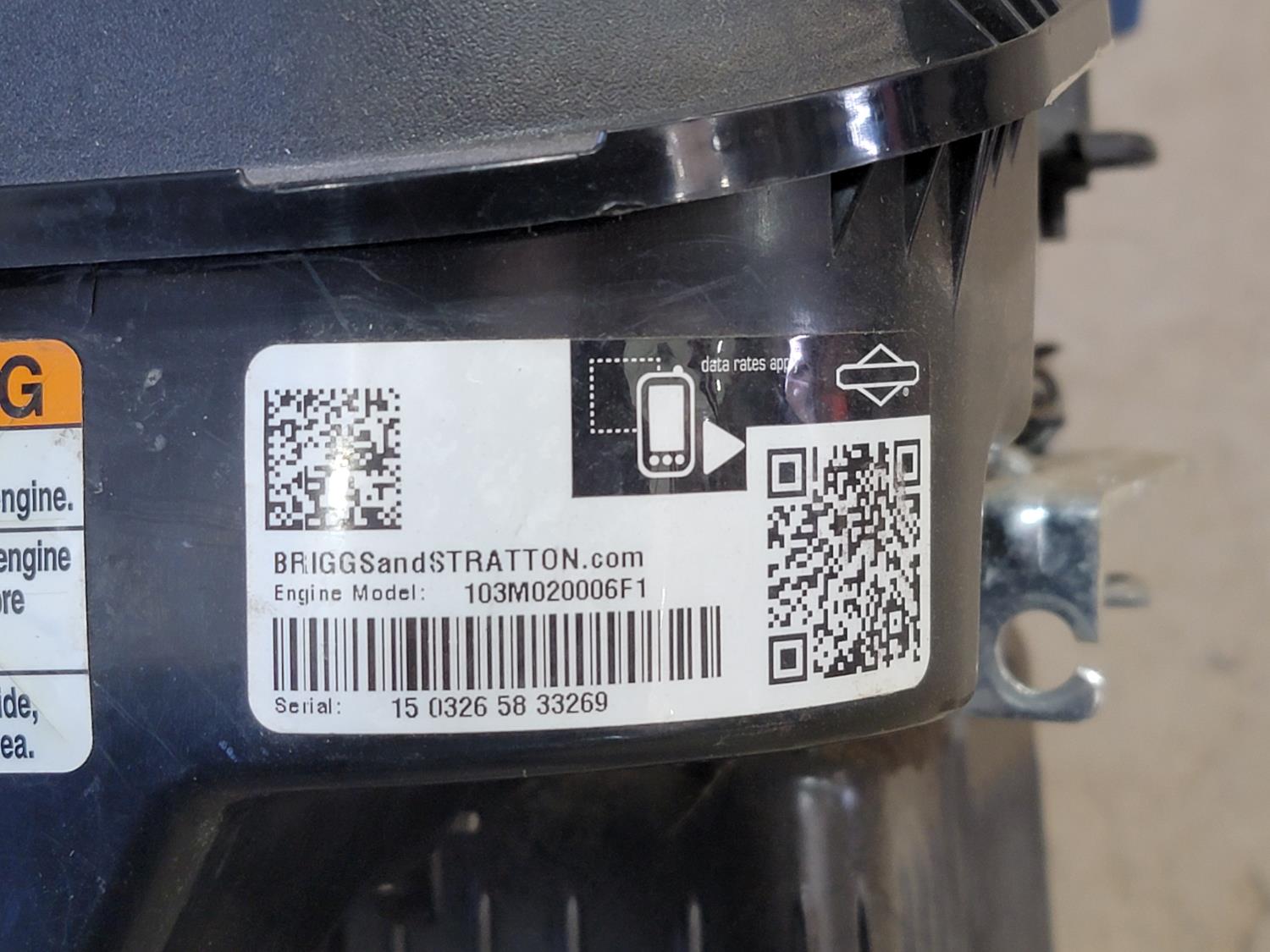 1467 2015 Briggs and Stratton 103M020006F1 Small Engine