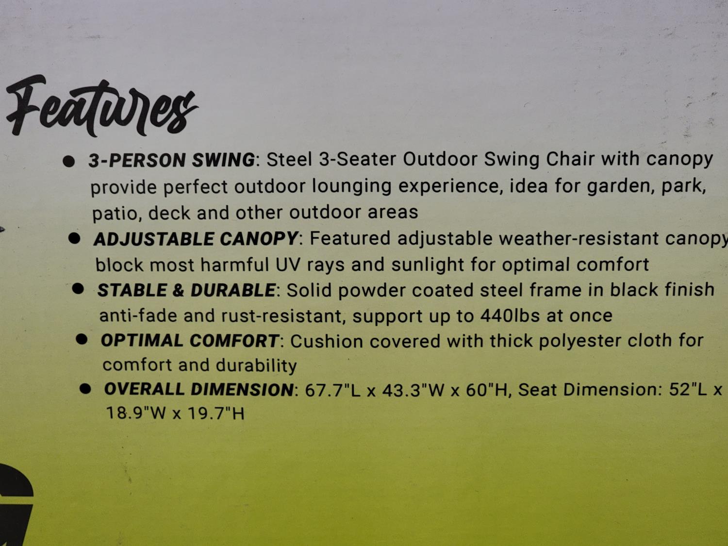 1665 3 Person Garden Swing Chair & Patio Hammock (Unused)