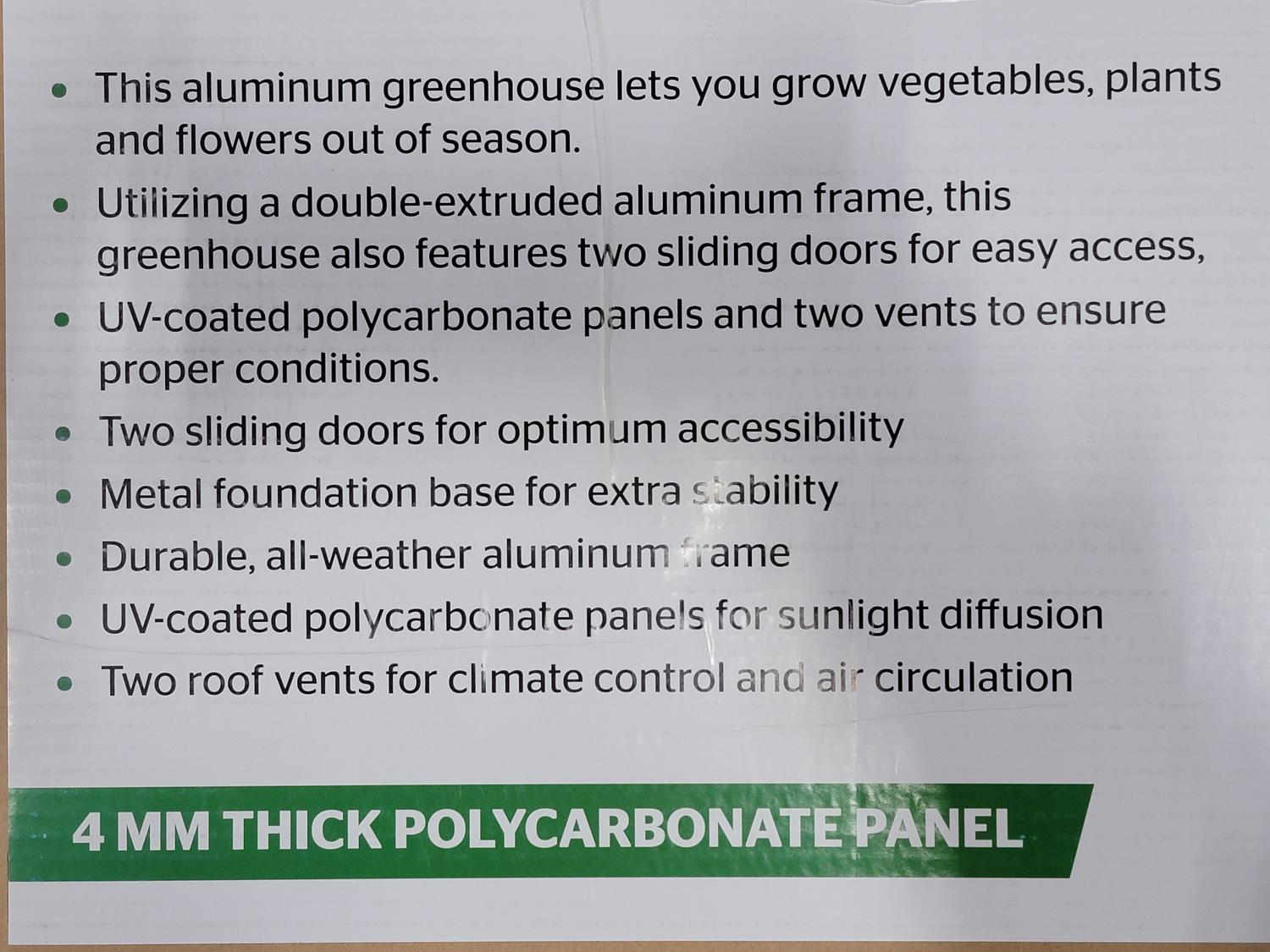2060 8 Ft X 10 Ft Polycarbonate Greenhouse (Unused)