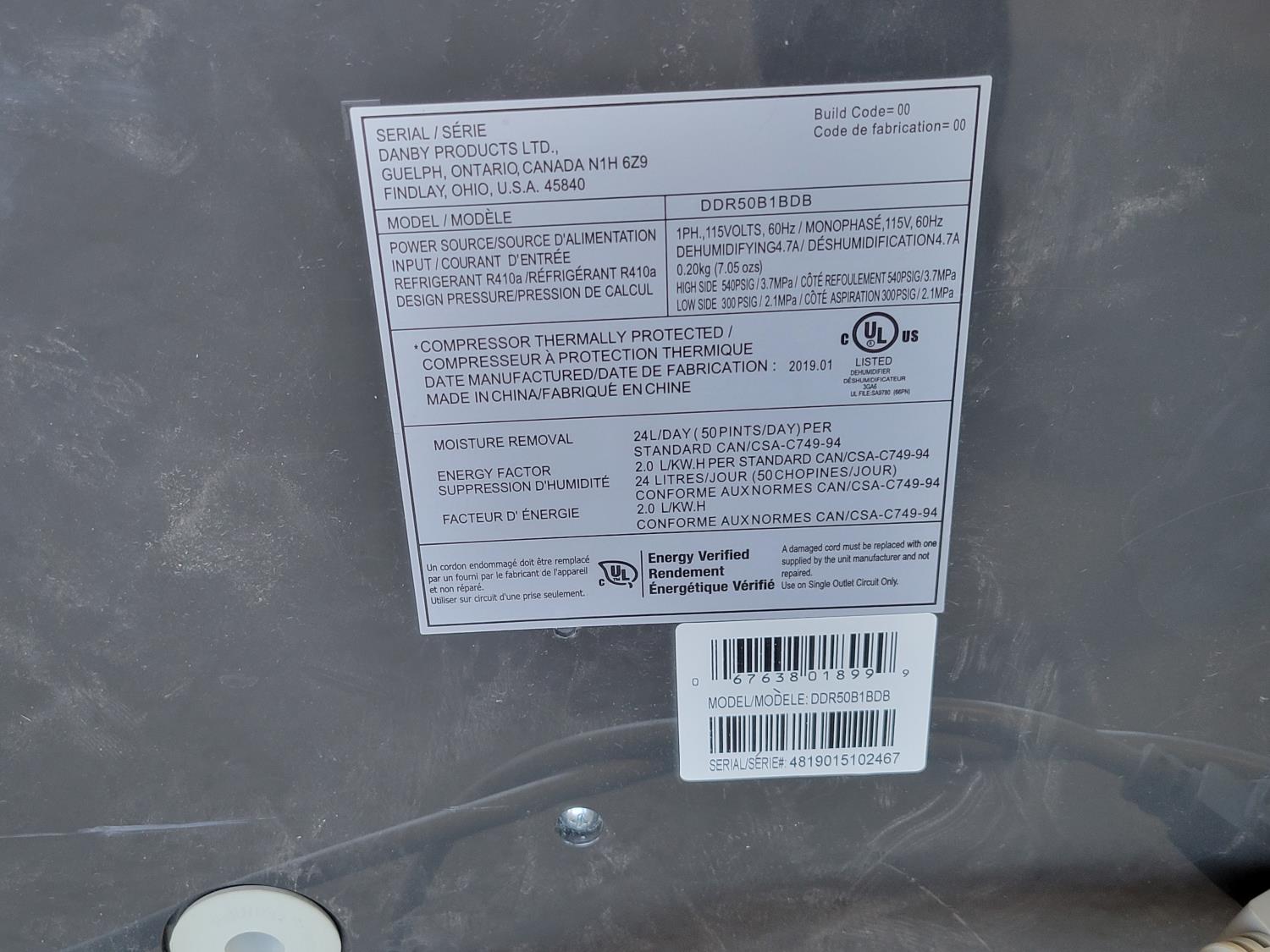 1842 Danby Dehumidifier