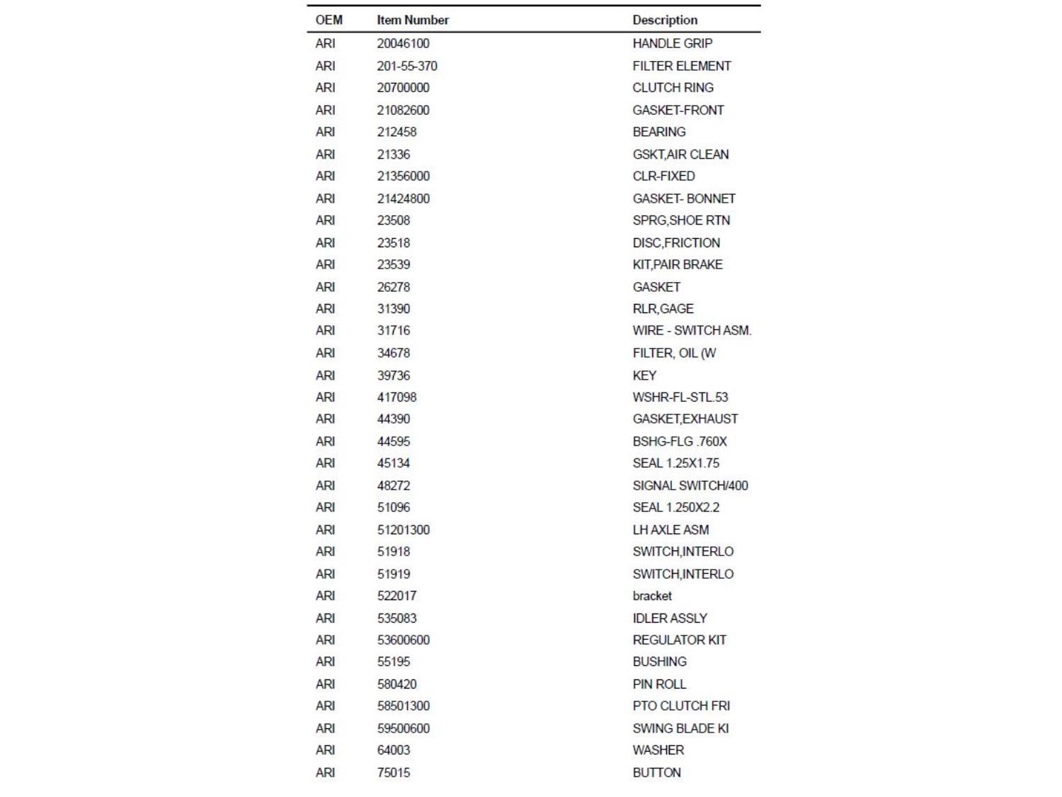 Parts / Accessories / Shop Supplies