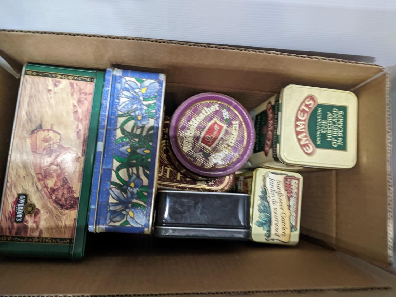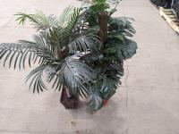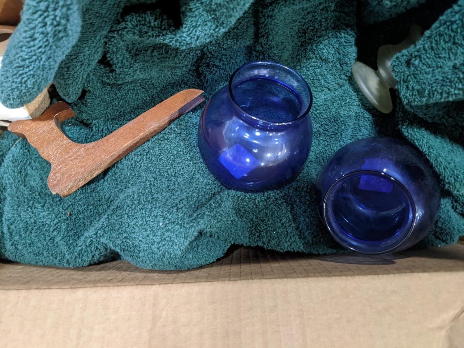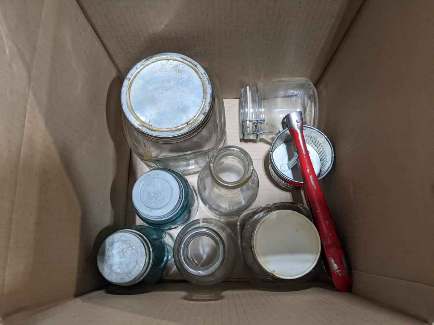 Artificial plants, assortment of tins, glass bottles and jars