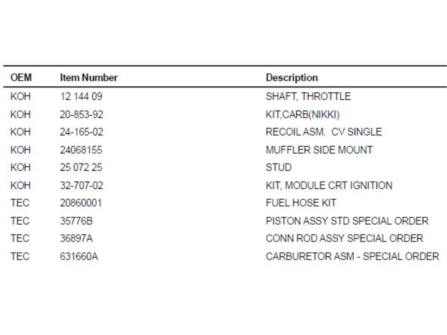 1154 Qty of Kohler Small Engine Parts (Unused)