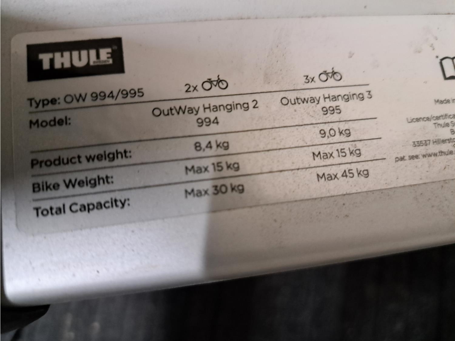 2584 Thule Outway Hanging 2/3 Bike Rack