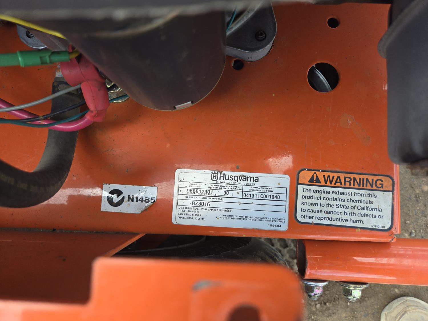 2131 Husqvarna RZ3016 Zero Turn Lawn Mower