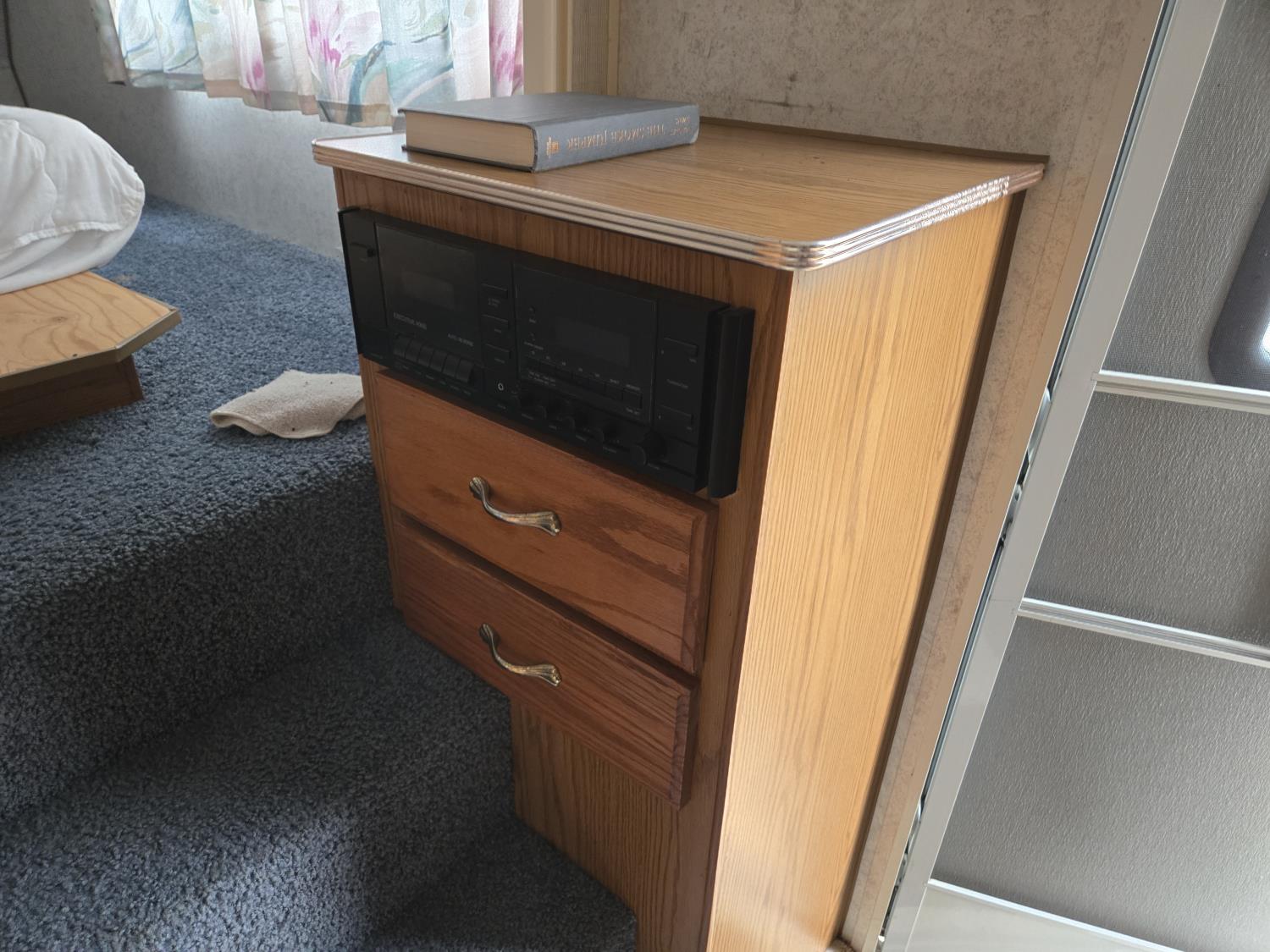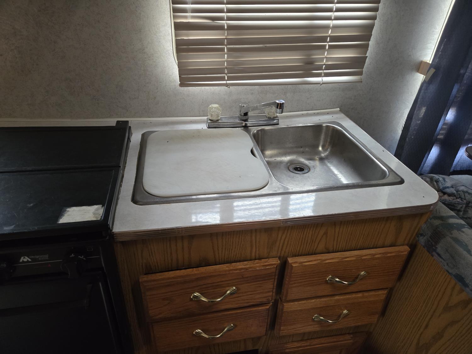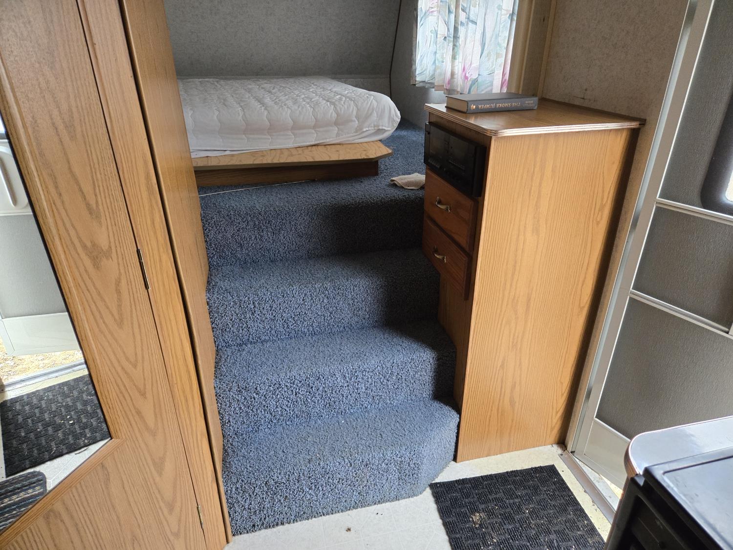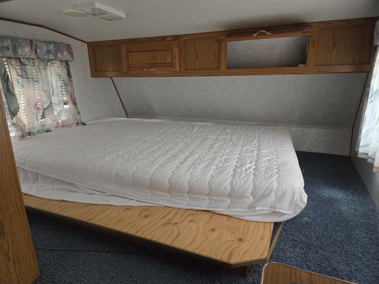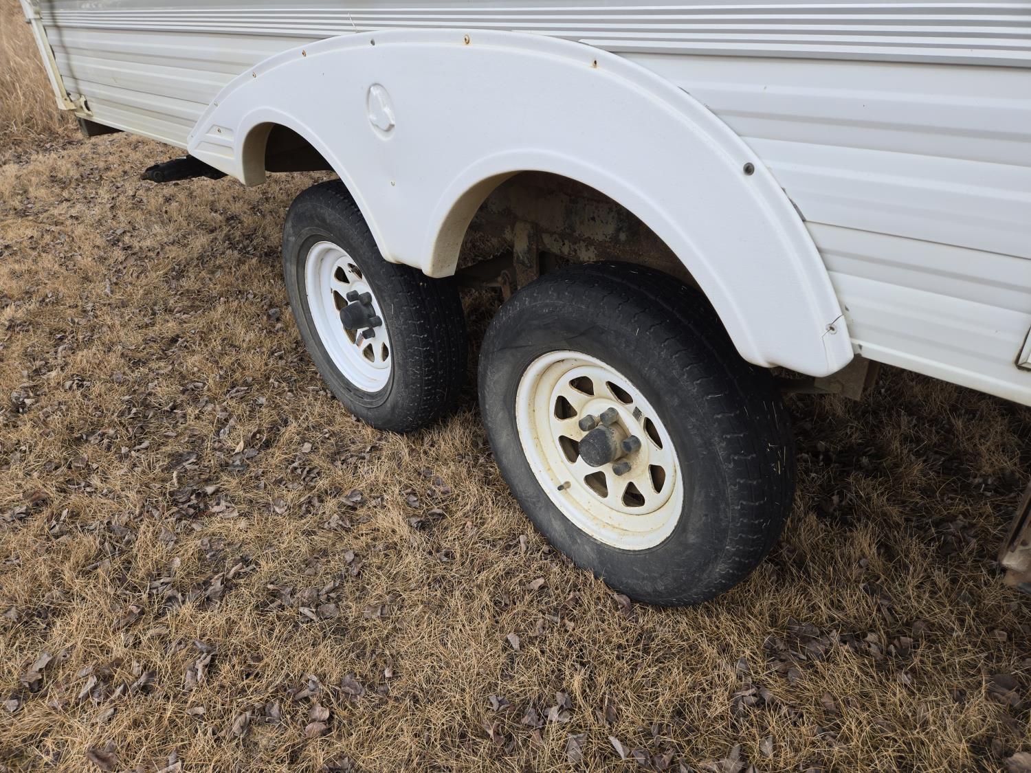 Awning, sleeps four, kitchen with fridge and stove, bathroom with shower, 205/75R16 tires