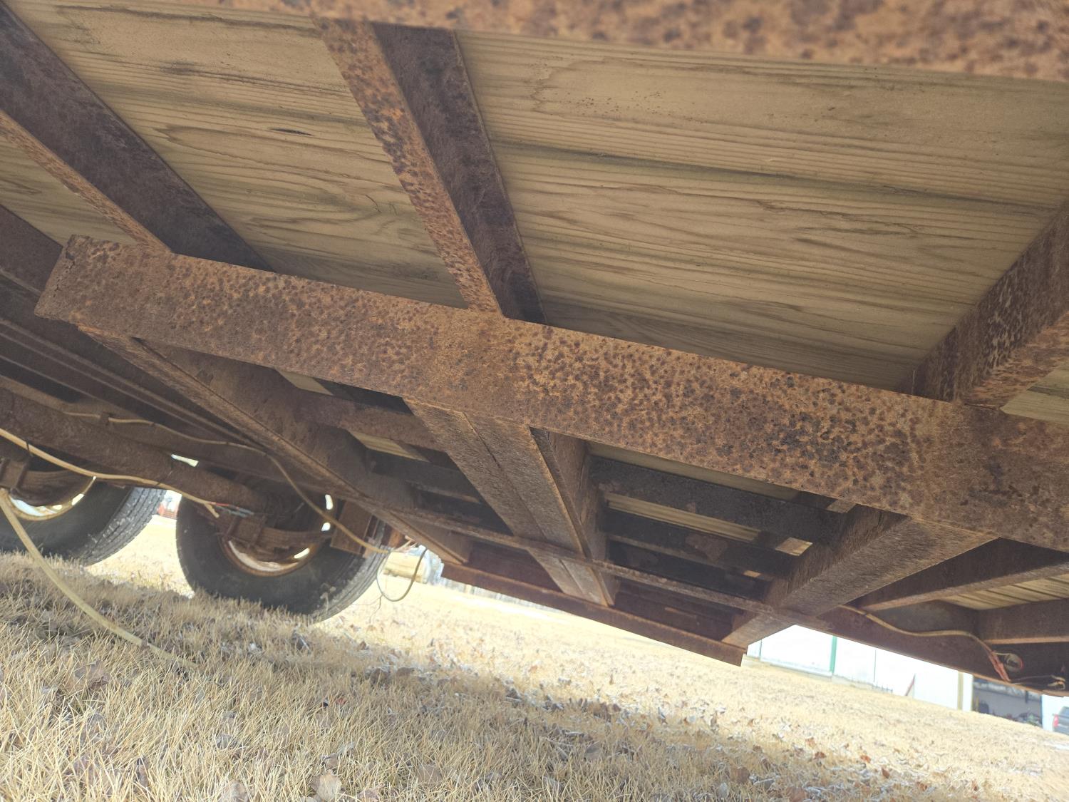 83 inch wide deck, wood deck, slide in ramps, electric brakes, spring suspension, rub rails, stake pockets, 7000 lb axles, 235/80R16 tires
