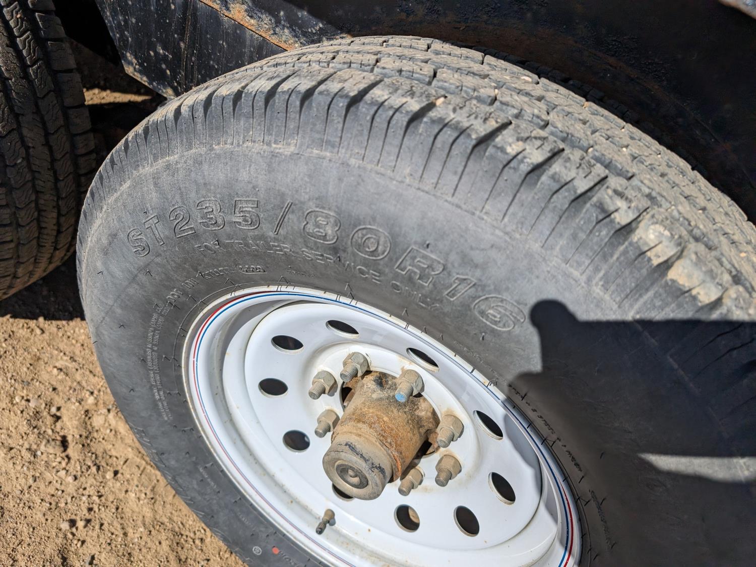 82 inch wide deck, 24 inch beaver tails, wood deck, stand up with spring assist ramps, electric brakes, spring suspension, ball hitch, 235/80R16 tires