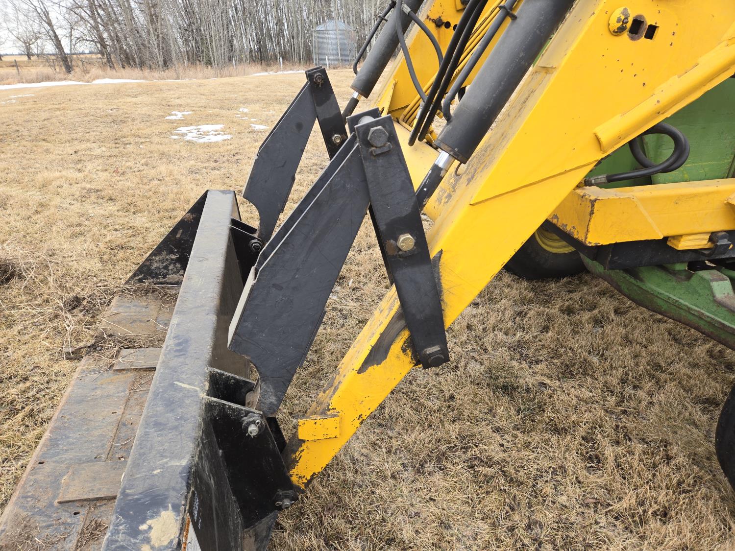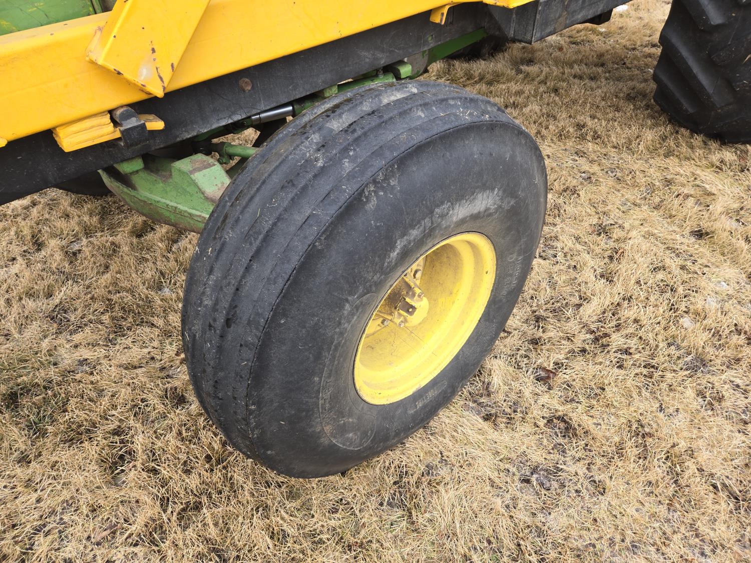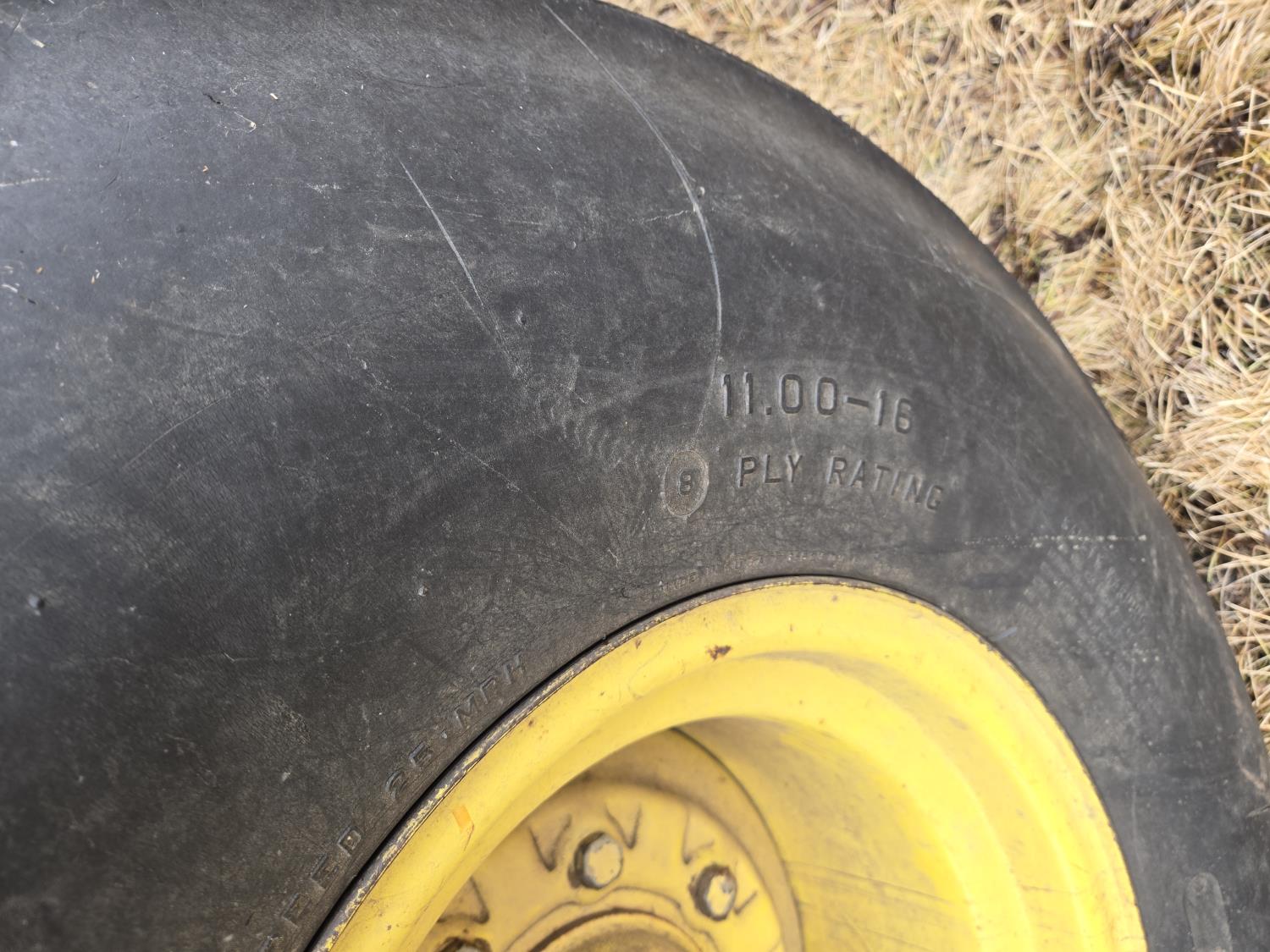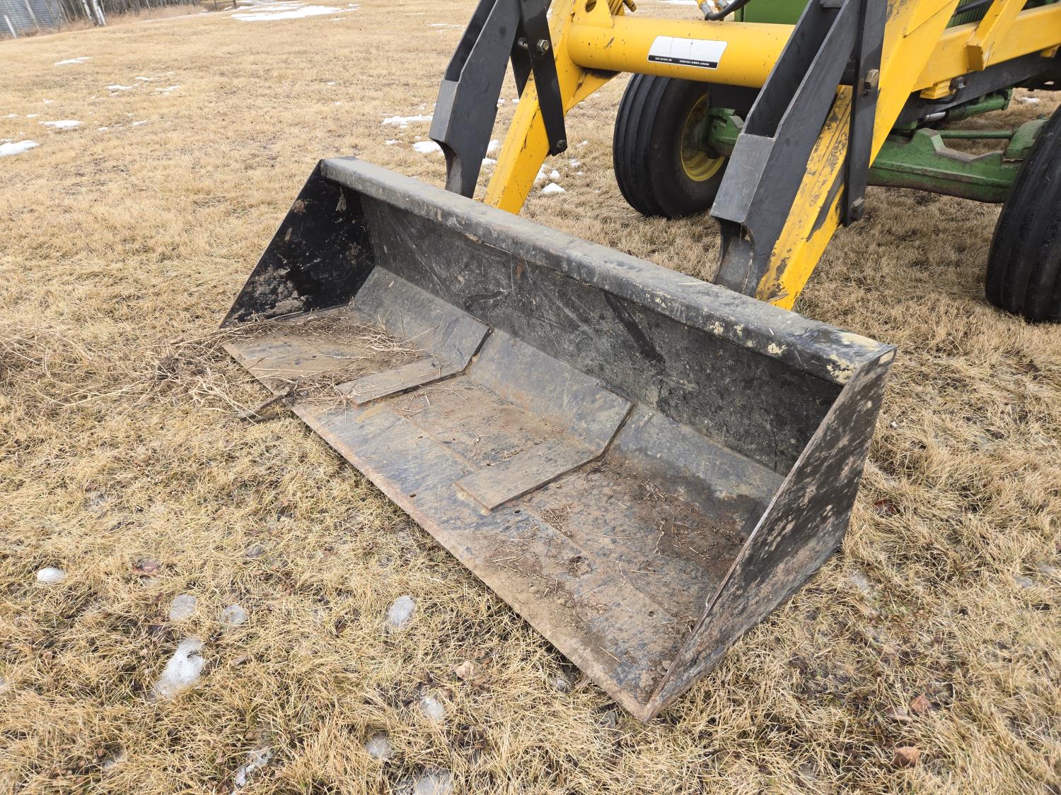 Ezee-On 125 loader, 84 inch bucket, John Deere 8.7 L 6 cylinder diesel engine, 140 PTO HP, 8 speed partial synchro transmission, 1000 PTO, 2 rear hydraulic outlets, rear wheel weights, 11.00-16 front tires, 24.5-32 rear tires
