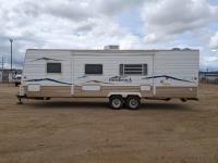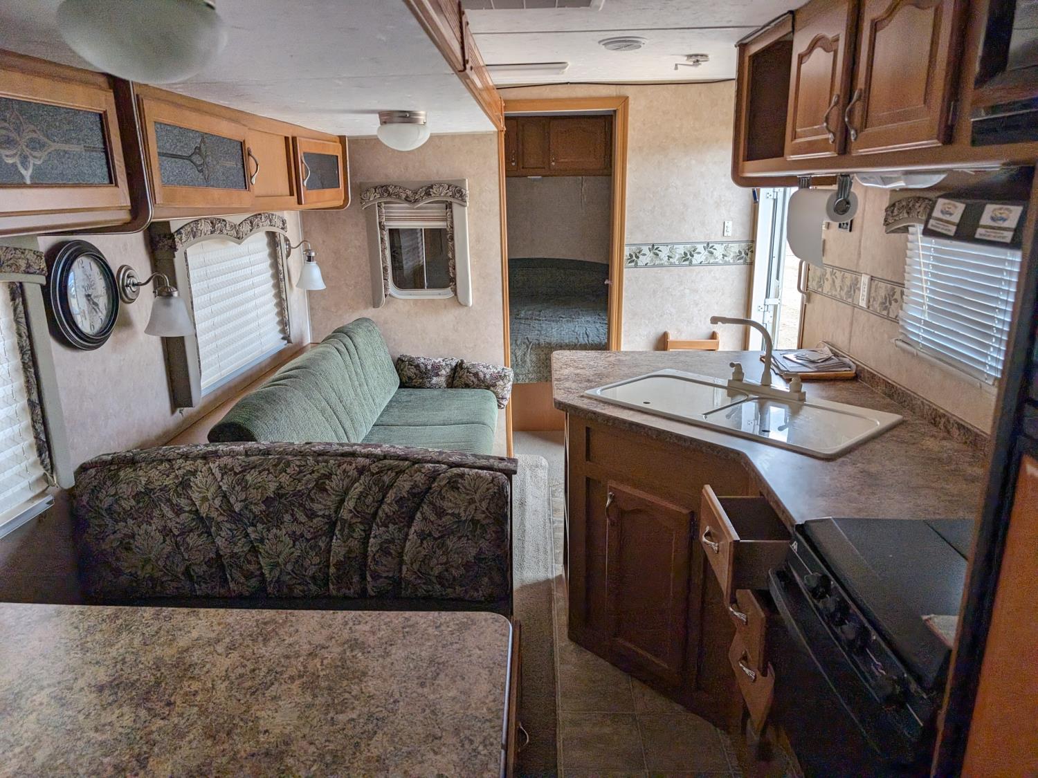 stove, fridge, microwave, full bath, master bedroom, A/C, 1 slide, manual awning, torsion suspension, electric brakes, ST225/75R15 tires
