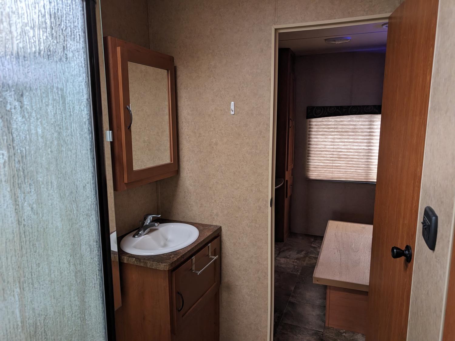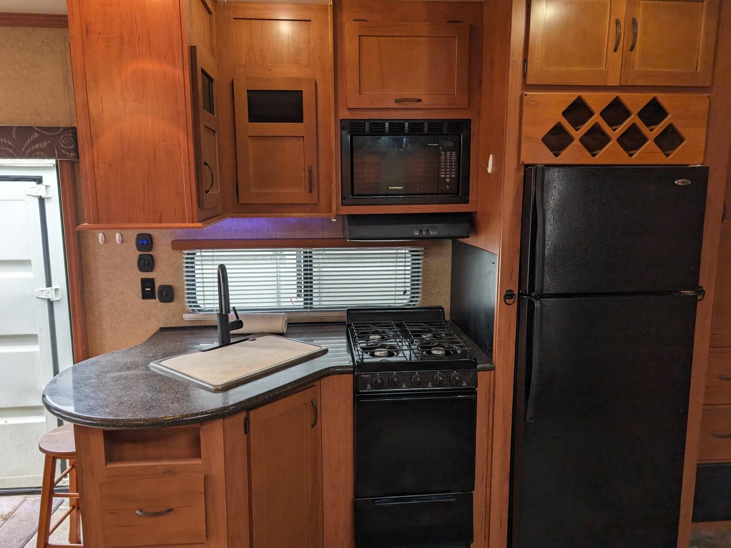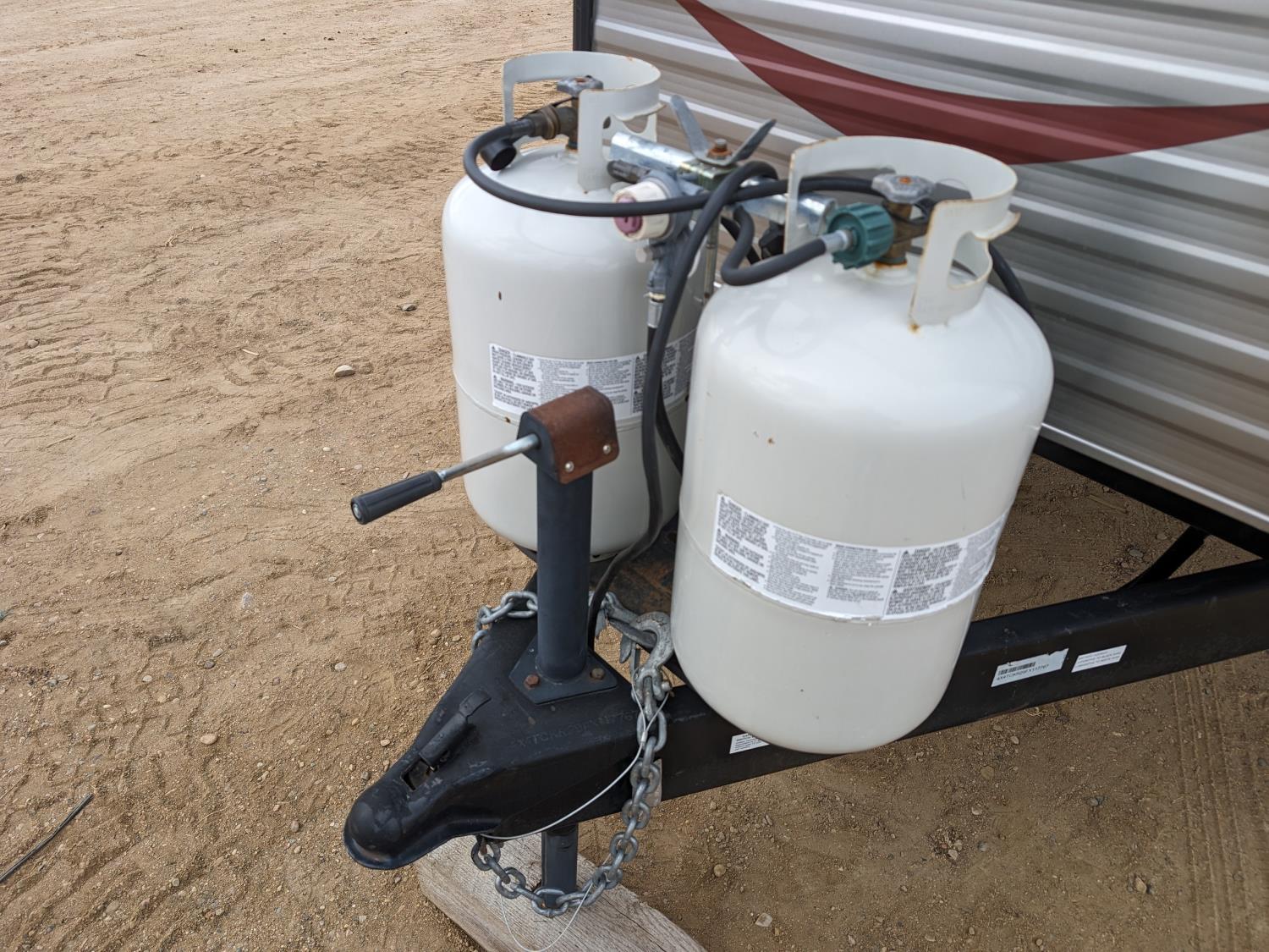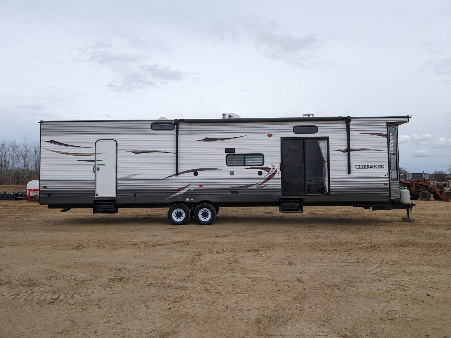 stove, fridge, microwave, full bath, master bedroom, A/C, 2 slides, power awning, spring suspension, electric brakes, 225/75R15 tires