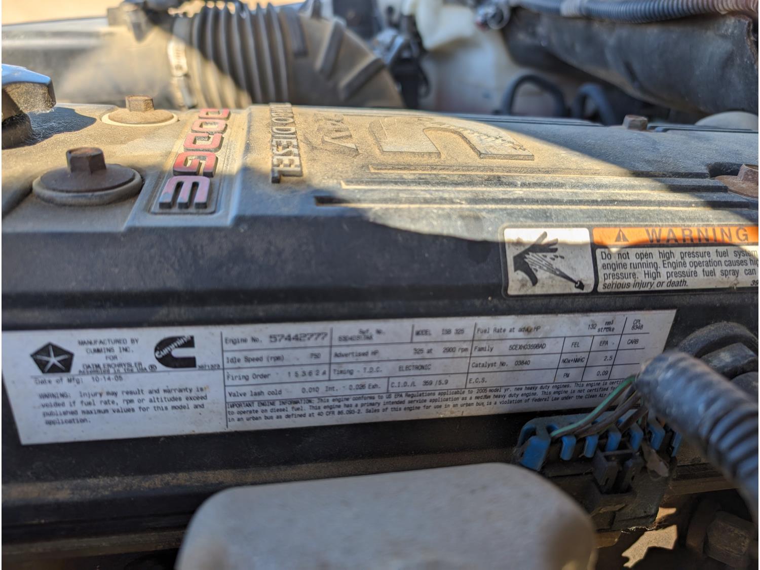 5.9 L, Inline 6, diesel, 6 speed manual transmission, P/W, P/L, A/C, Westeel fuel tank w/ pump, LT265/70R17 tires
