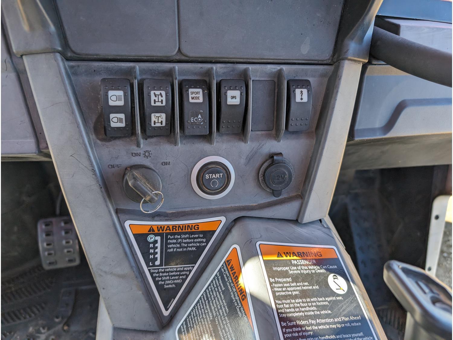 1000 cc engine, automatic transmission, open canopy, 2 passengers, A/C, heater, windshield, front winch, receiver hitch, 30X10.00-14NHS tires