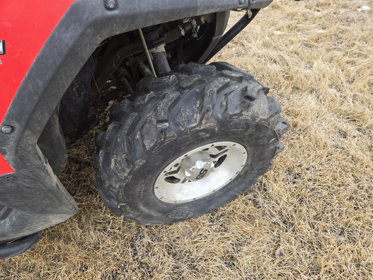 gas engine, high/low range, front winch, rear storage box, rear hitch, 27X9R12 front, 27X1R12 rear tires
