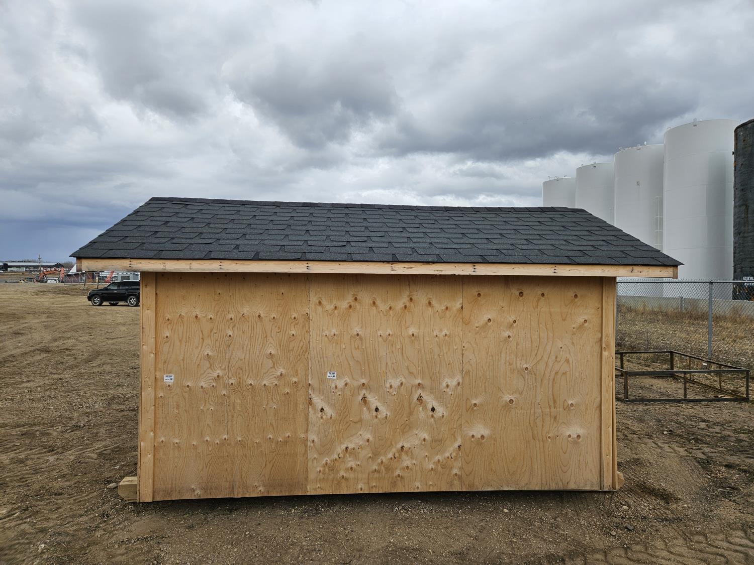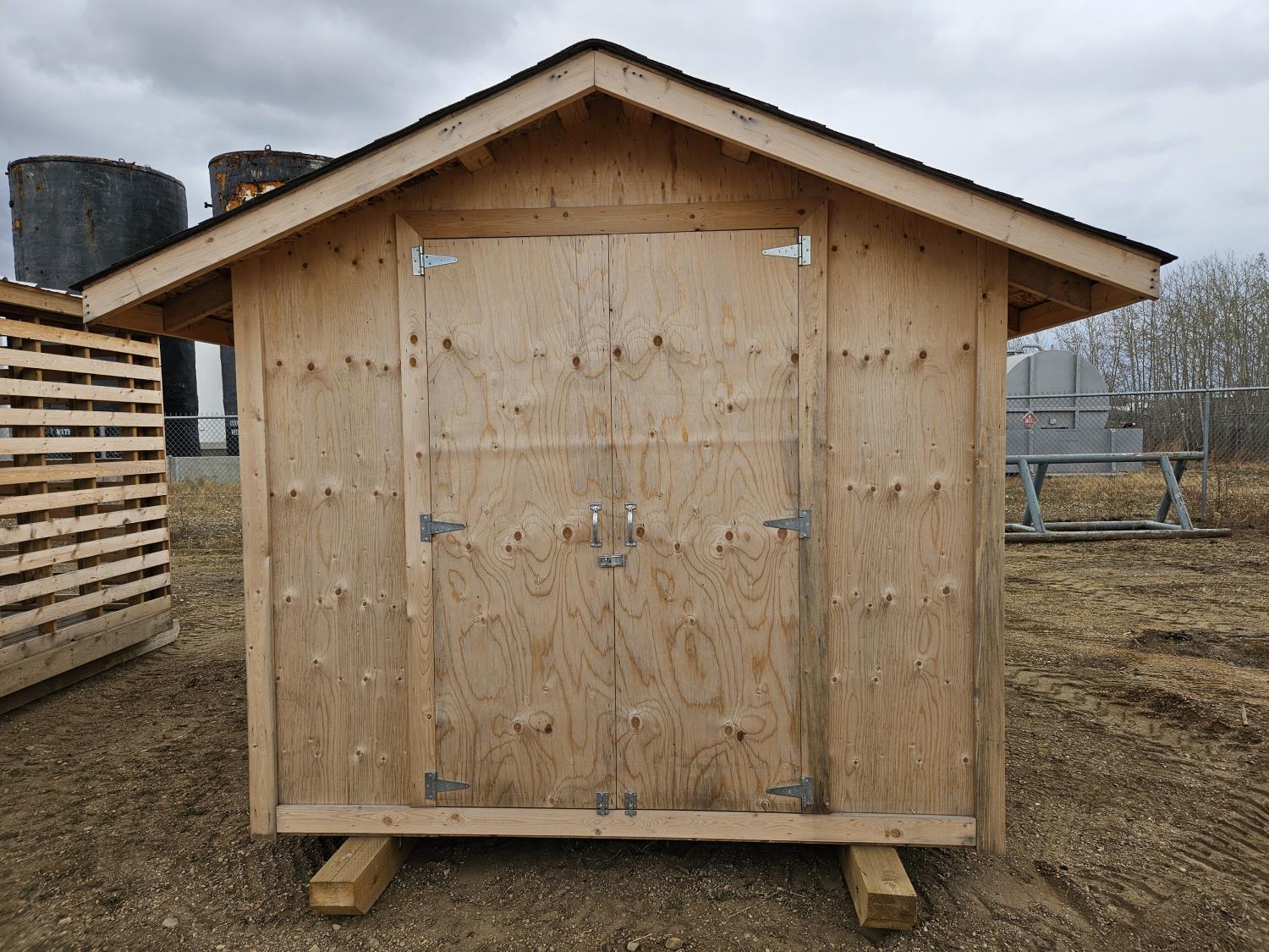 barn doors, asphalt roof, 4X6 treated skids