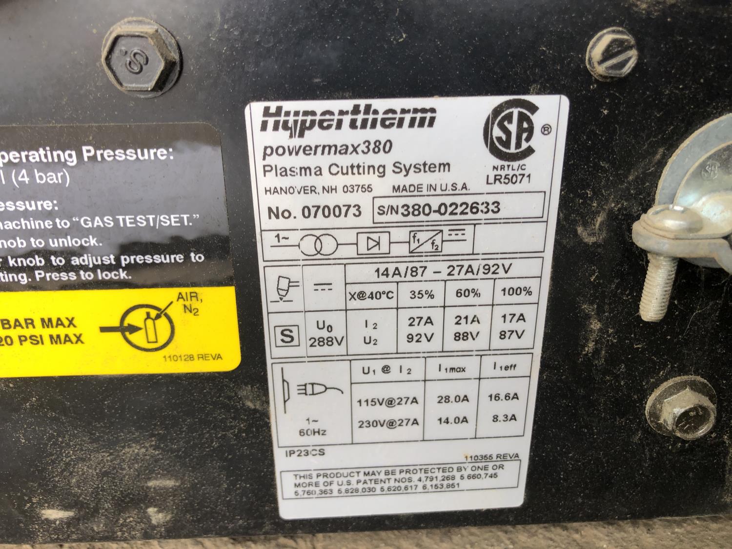 182 Hypertherm Powermax 380 Plasma Cutter