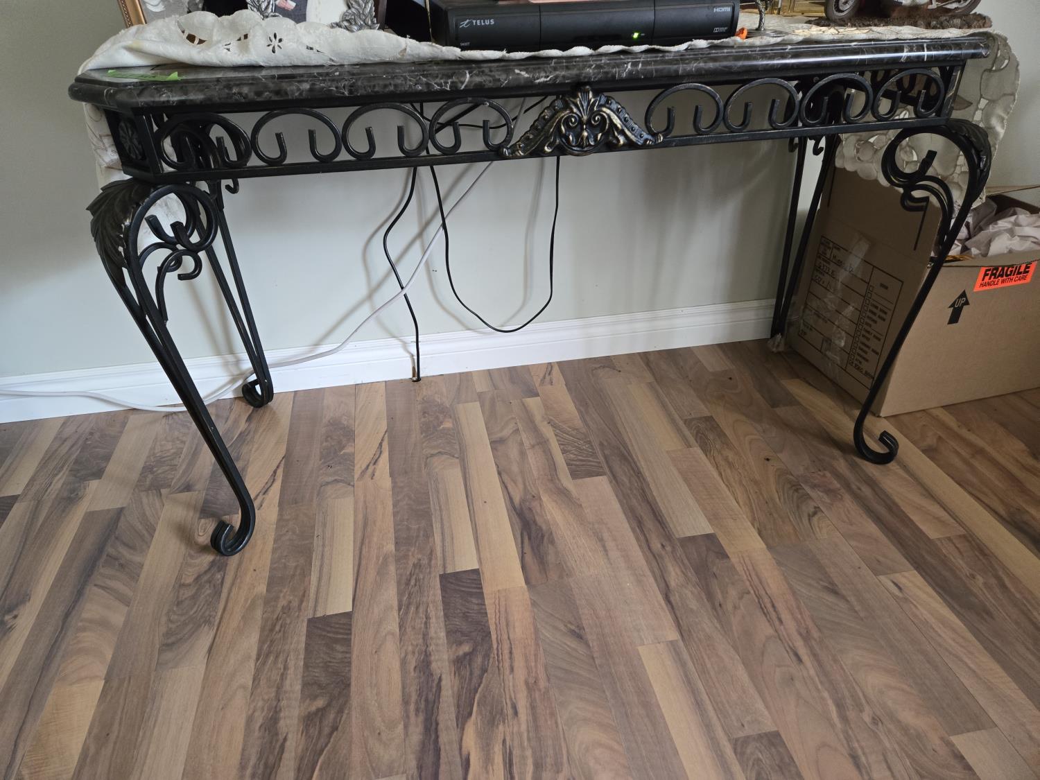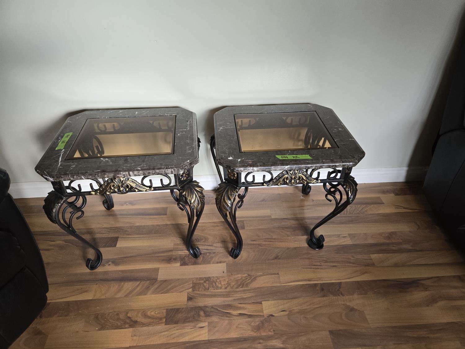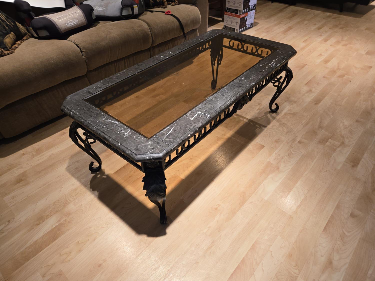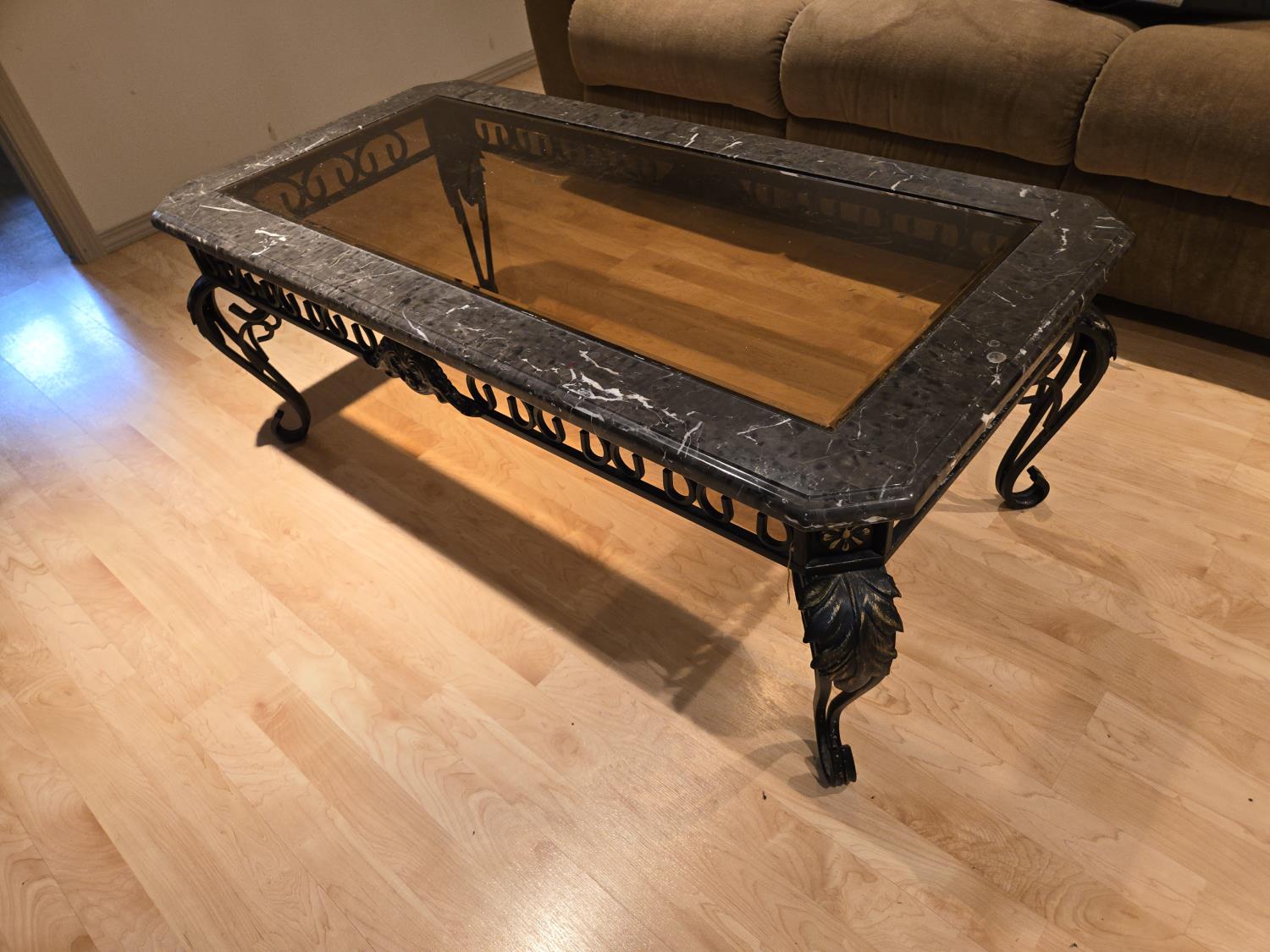 (1) Occasional table 48 inch long X 18 inch wide X 28 inch high, (1) coffee table 48 inch long X 24 inch wide X 17.5 inch high, (2) side tables 20 inch X 22 inch X 17.5 inch high