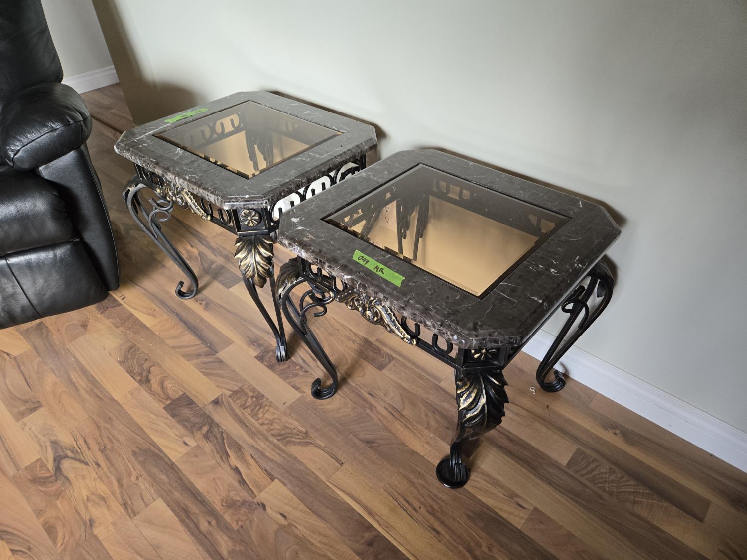 (1) Occasional table 48 inch long X 18 inch wide X 28 inch high, (1) coffee table 48 inch long X 24 inch wide X 17.5 inch high, (2) side tables 20 inch X 22 inch X 17.5 inch high