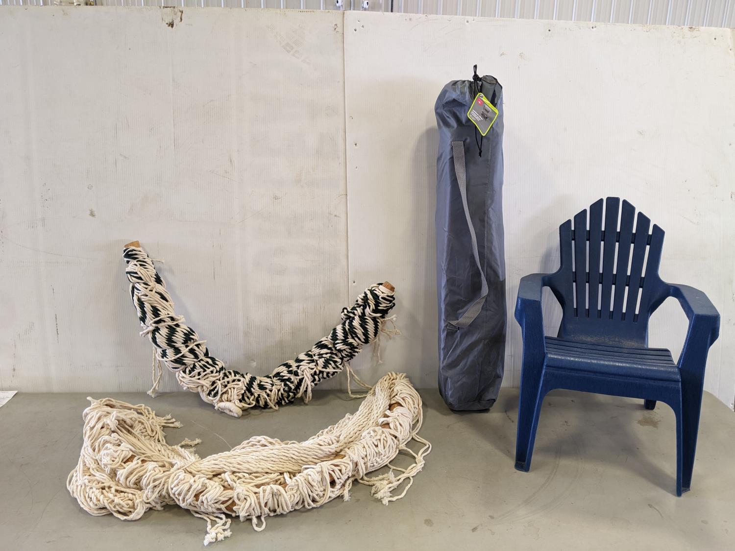 5560 (2) Tree Hammocks, Children's Poly Chair and Folding Chair with Canopy