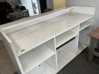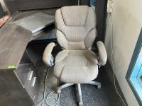 office chair, staples paper shredder, HP office jet Pro8710 printer, wood table 43 inch X 25 inch X 30 inch high, storage unit 60 inch X 30 inch X 46 inch high