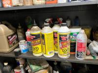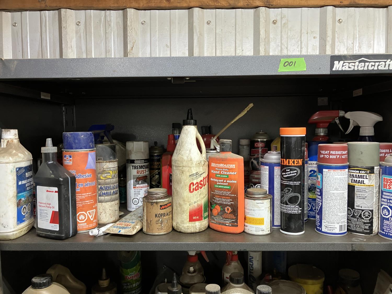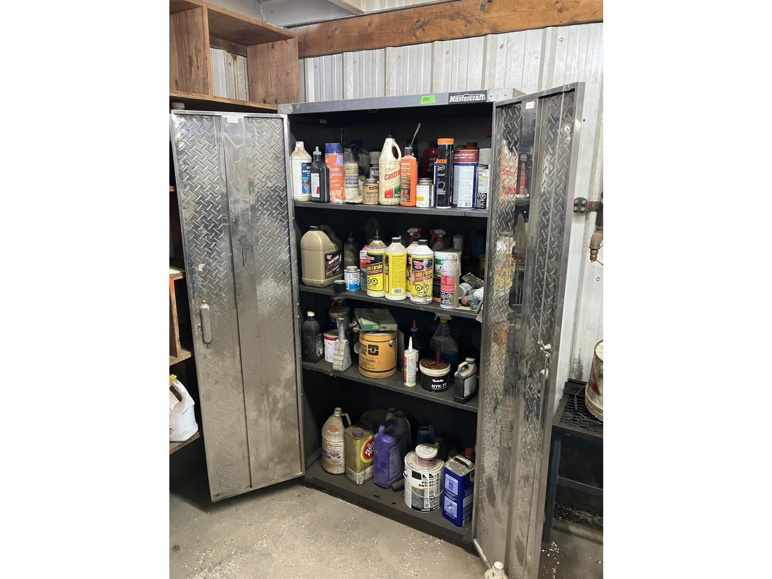 qty of various shop fluids, cabinet measures 36 inch W X 18 inch D X 67.5 inch H