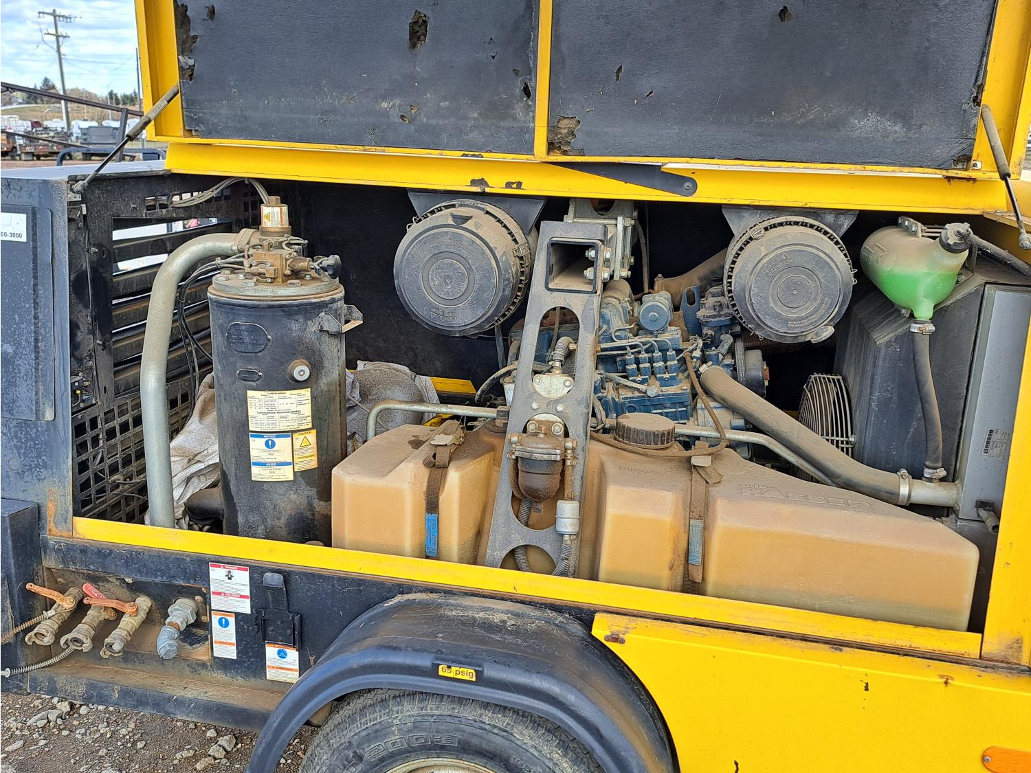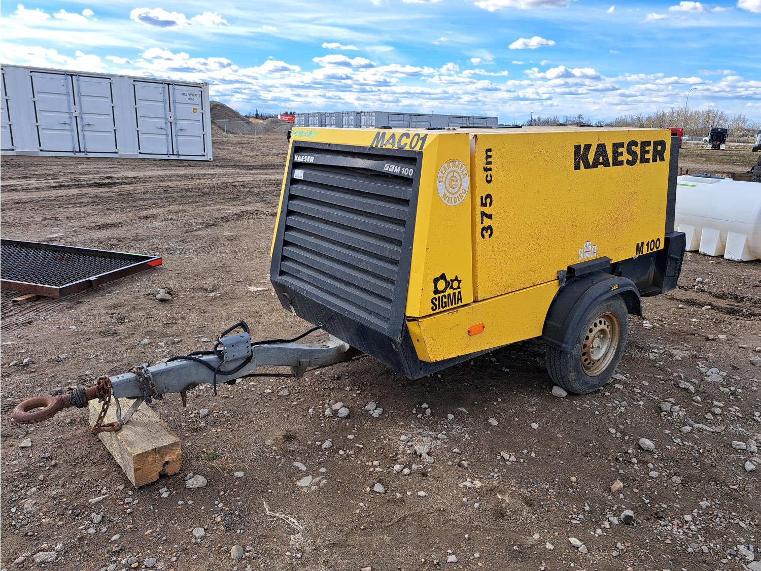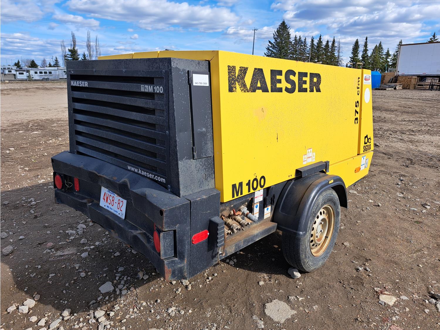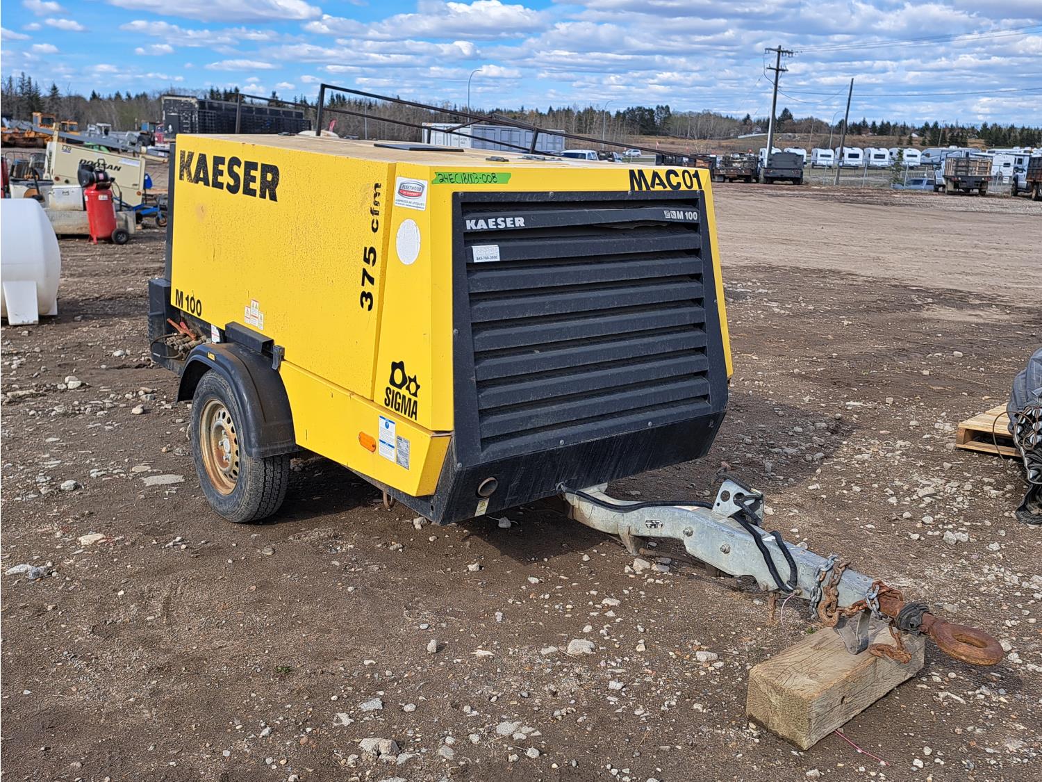 Kubota diesel engine, 185R14C tires, pintle hitch, 375 CFM.
