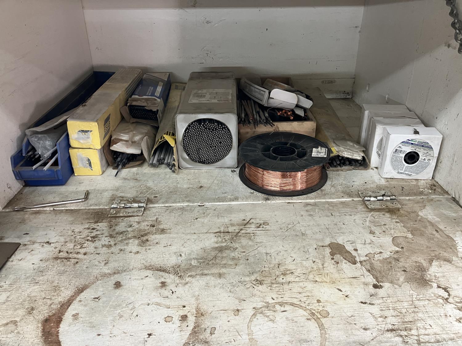 5802 Large Qty of Welding Items & Supplies in Wooden Cabinet