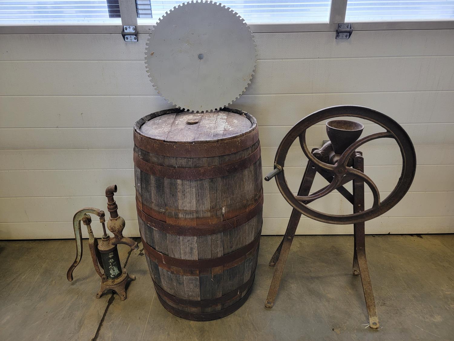 Barrel, hand mill, well head, cutting wheel