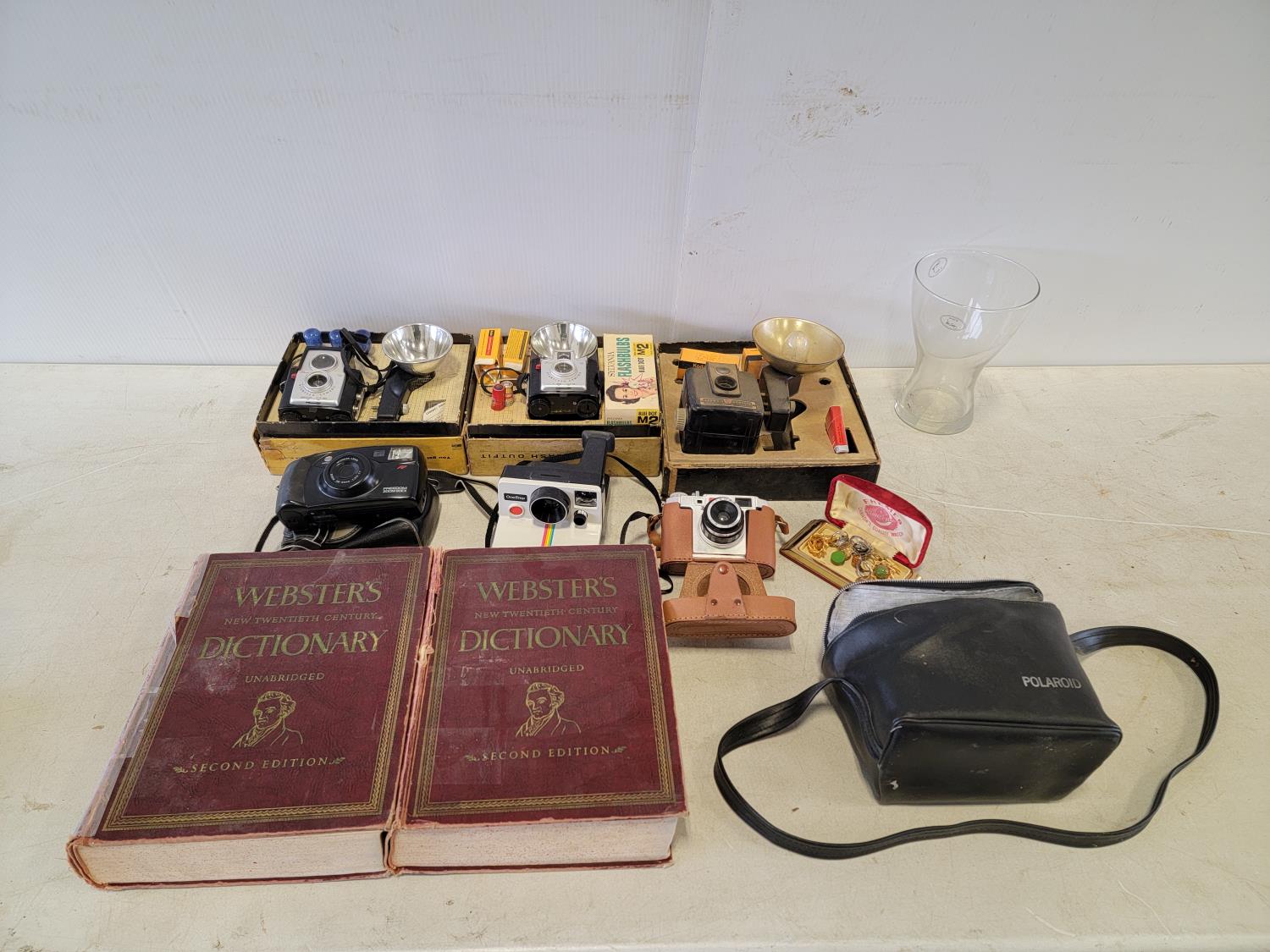 5332 Qty of Film Cameras, (2) Dictionaries, Jewelry, and a Vase