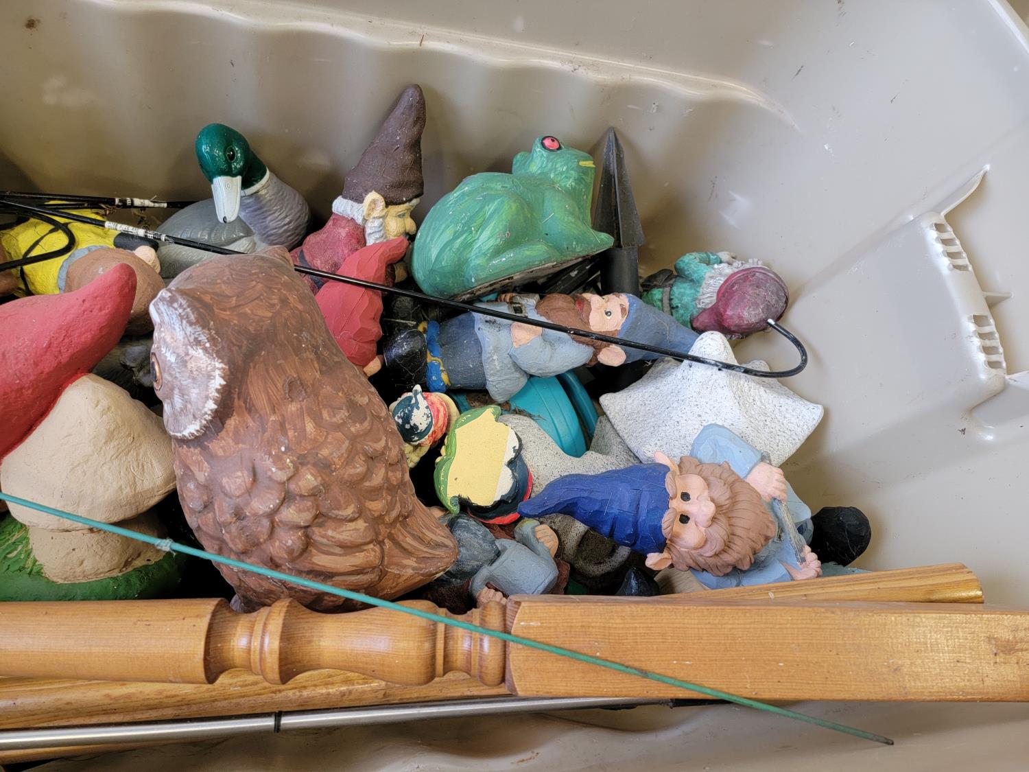 (5) badminton rackets, solar decorations, garden gnomes,